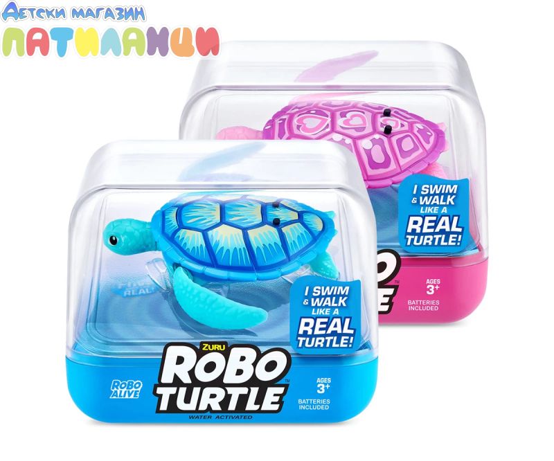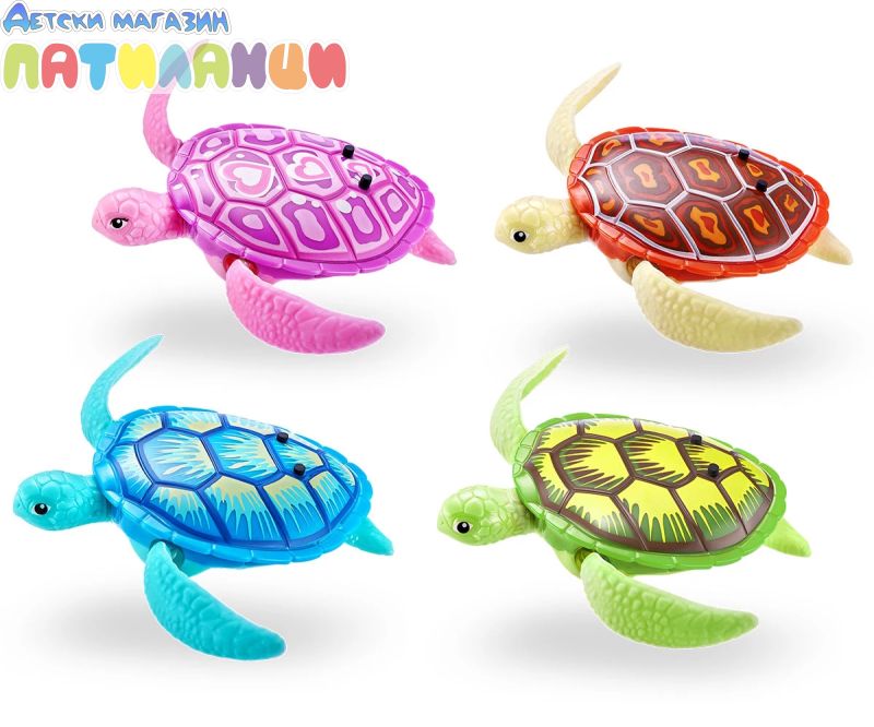 - ZURU Robo Turtle: Пуснете своята Robo Turtle във вода и я гледайте как оживява с усъвършенстваната технология на ZURU, активираща се с вода!