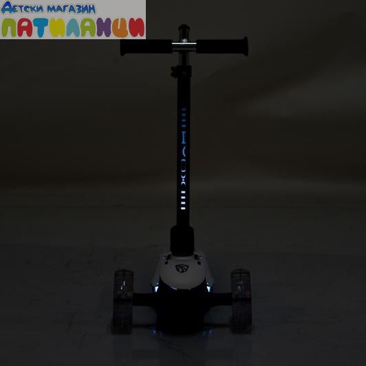 LED светлина на платформата и отпред на кормилото с RGB контрол за 7 различни цвята светлина и 3 различни режима на мигане.