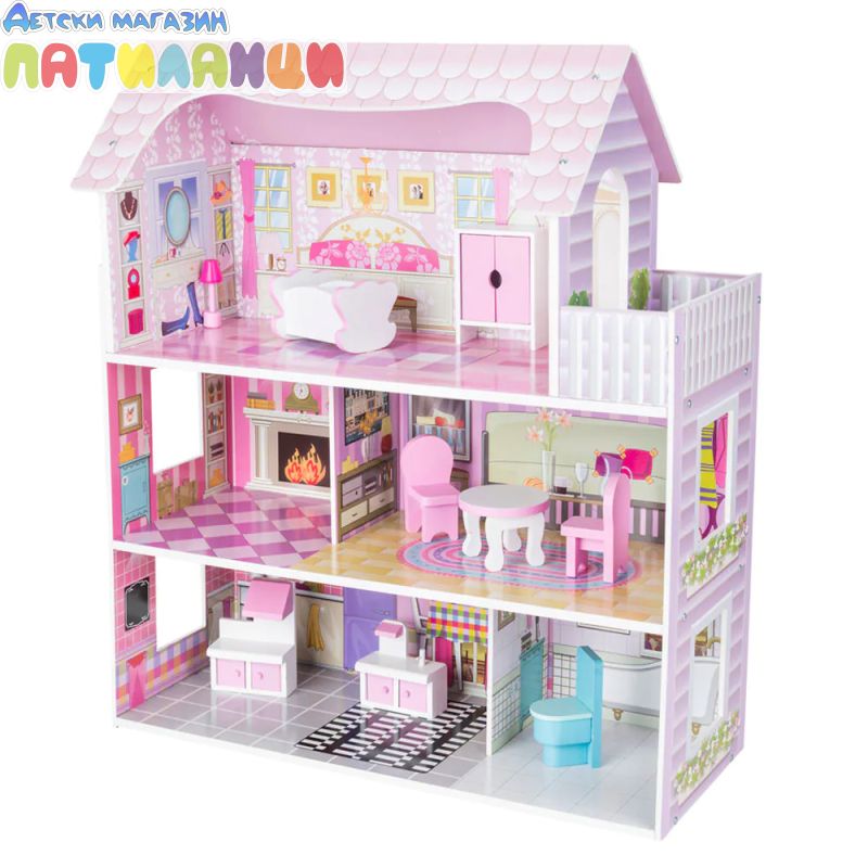 Дървена къща за кукли 3 нива Emily Wooden TL41101