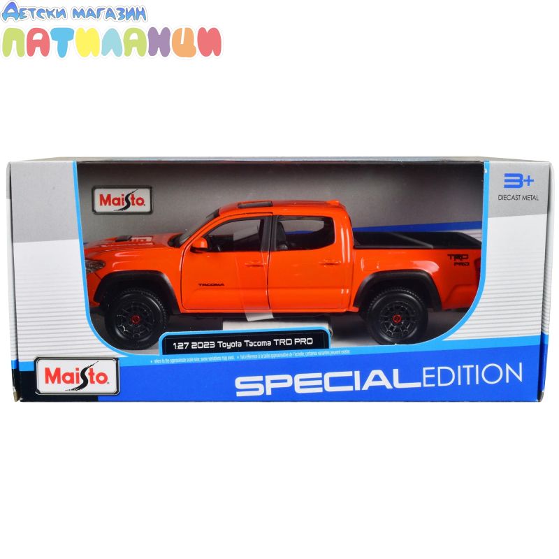 Метален джип пикап Toyota Tacoma TRD Pro 2021 - 1:24 Maisto 32910 orange