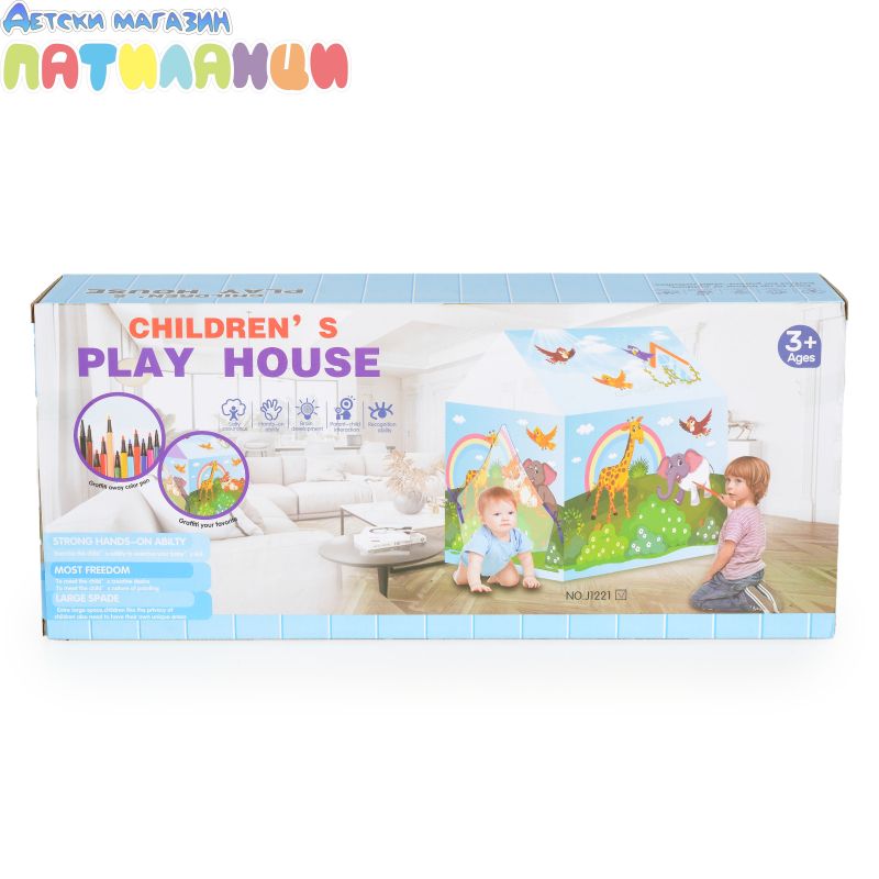 Детската къщичка за игра и оцветяване е лесна за сглобяване, лека и удобна за преместване.