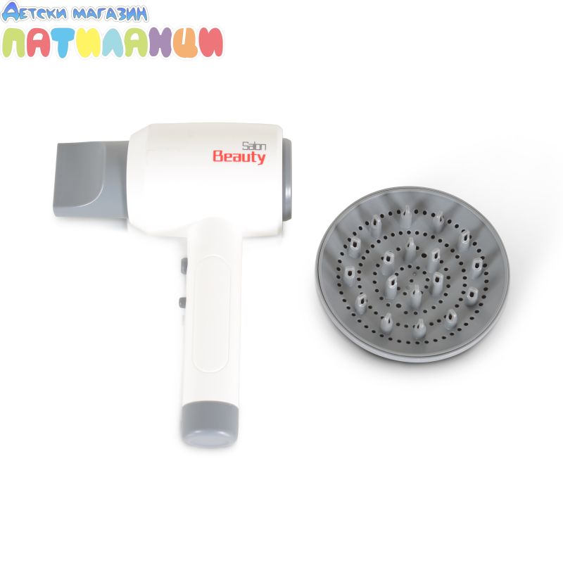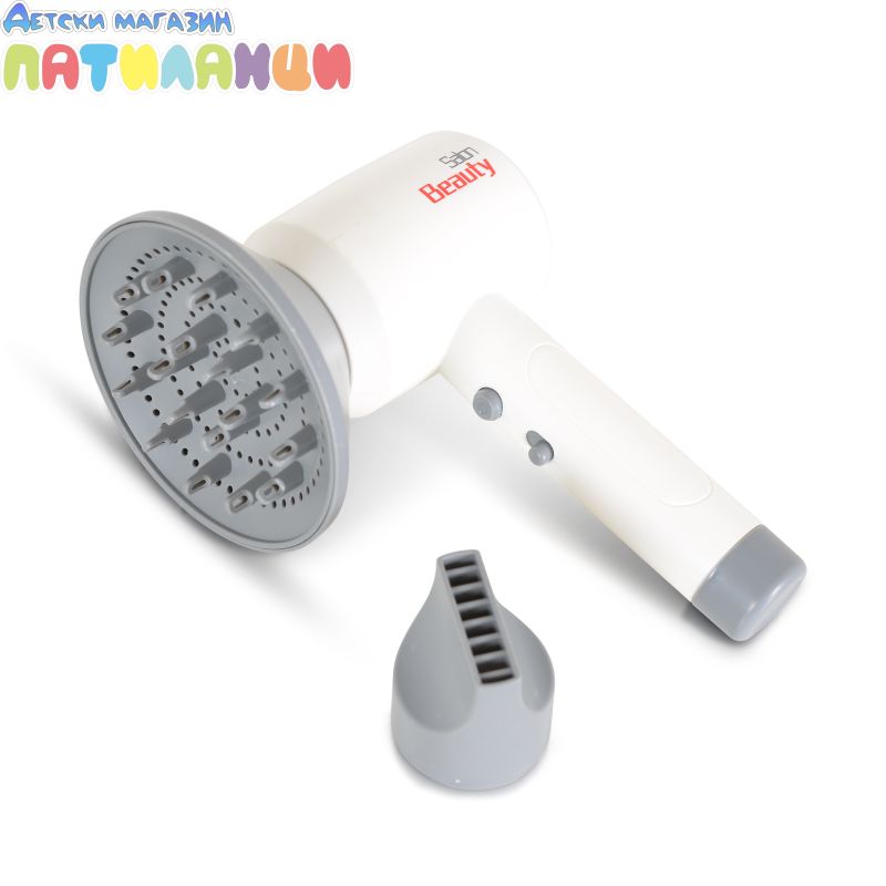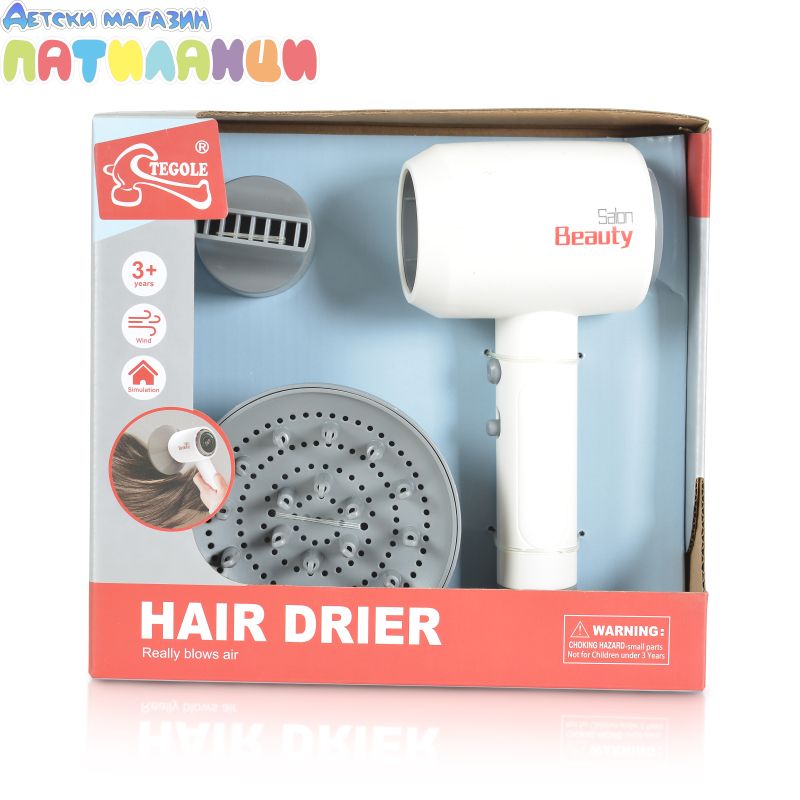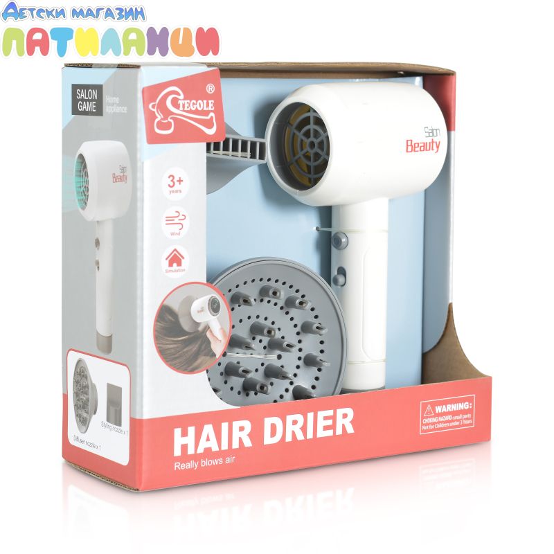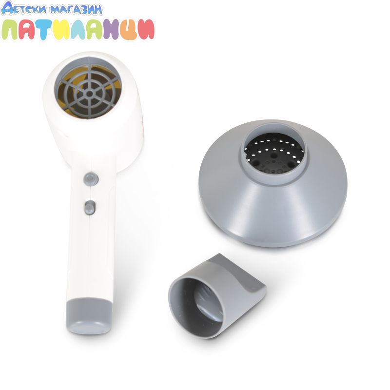 Играчката е с реалистичен дизайн, действително издухва въздух, симулира реалните функции на уреда.
