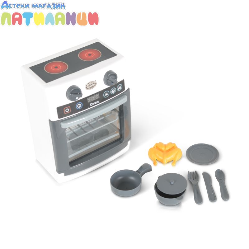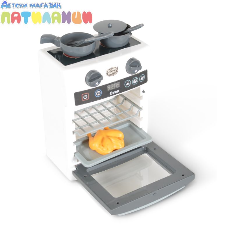 Електроуред, играчка печка е с реалистичен дизайн, реални звуци, симулира реалното готвене.