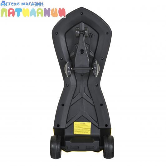 Автомобилът разполага с бутон, който активира впечатляващи предни светлини и реалистични звукови ефекти, създавайки усещане за истинско шофиране. Удобната поставка за крачета позволява децата да се насладят на комфорта по време на игра, а маневрените предни колела с LED светлини правят управлението лесно и забавно.
