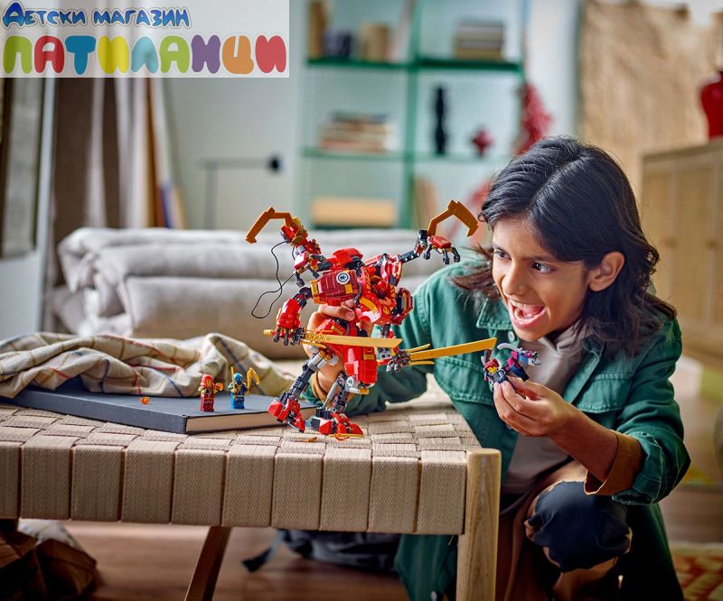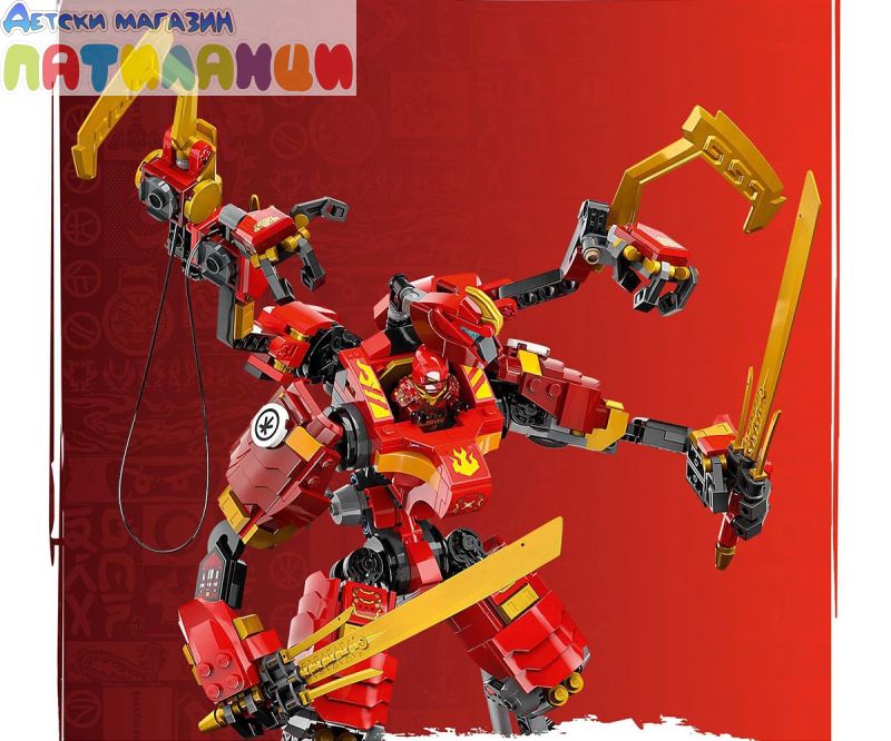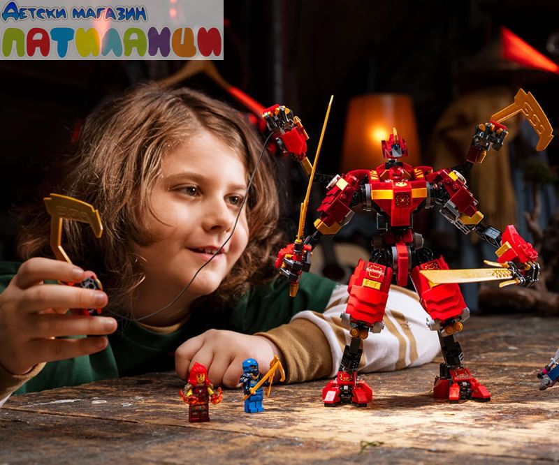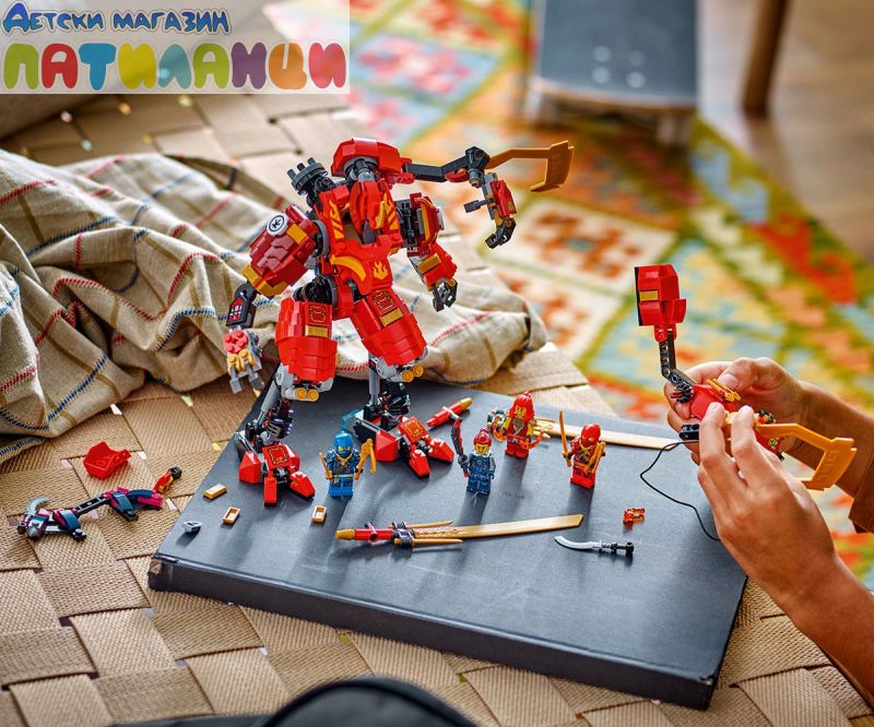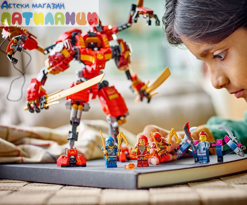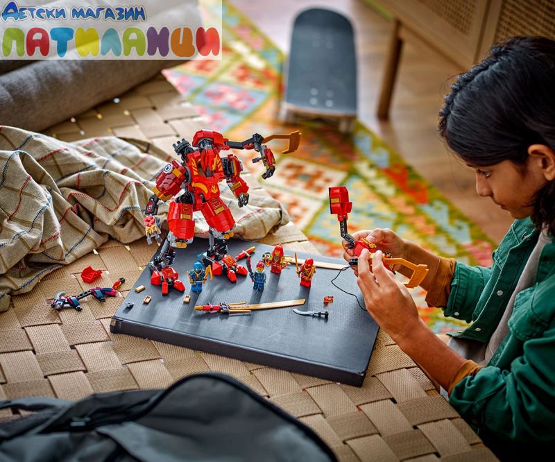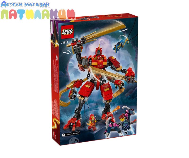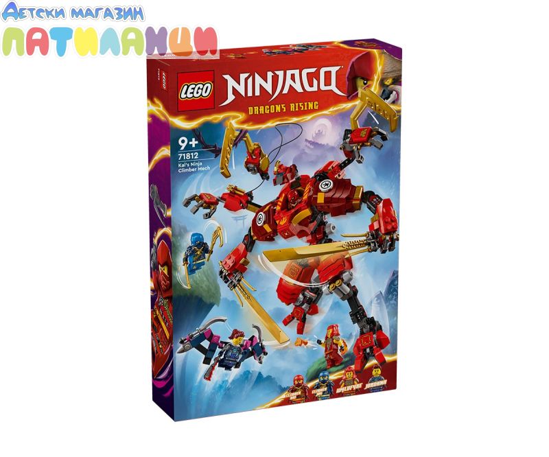 Момчета и момичета на възраст 9+ могат да пресъздават битки в гората на сенките от сезон 2 на NINJAGO® Dragons Rising с „Нинджа робот катерач на Кай“ (71812). Приключенският комплект включва впечатляваща фигура на робот в червения цвят на Кай с 2 големи нинджа куки на гърба, за да могат децата да разиграват екшън и катерене (или да я закачат и излагат на показ след играта), подвижни ръце, крака, торс, глава и стъпала, 2 големи катани и кабина за минифигура. Нинджа играчката включва 4 минифигури от NINJAGO: Кай катерач и Джей катерач с катани, Уайлдфайър с 2 пламтящи юмрука и злата Джордана с планер. Останалата част от гамата LEGO® NINJAGO от нинджа играчки за конструиране за деца включва дракони, превозни средства и храмове, така че феновете да могат да разиграват ролеви приключения със своите герои (комплектите се продават отделно). Всяка екшън играчка може да бъде създадена с приложението LEGO Builder, което направлява вас и вашето дете в лесното и интуитивно строително приключение. Мащабирайте и завъртайте модели в 3D, записвайте комплекти и проследявайте напредъка си.