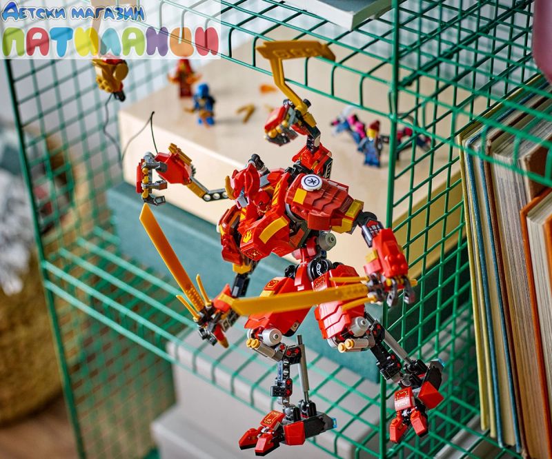 Подвижен робот – ръцете, краката, торсът, главата и стъпалата на нинджа робота са подвижни и той се предоставя с 2 големи катани и отваряща се кабина с място за минифигура;