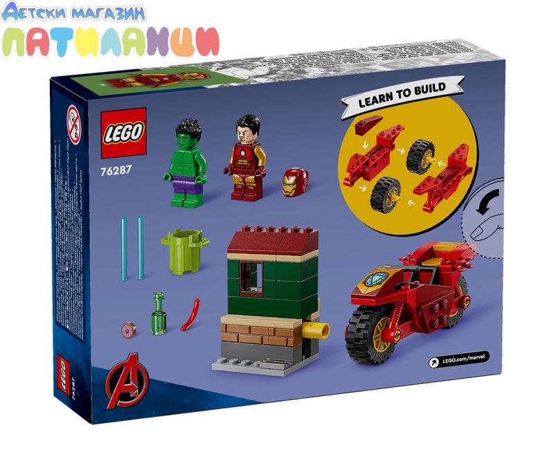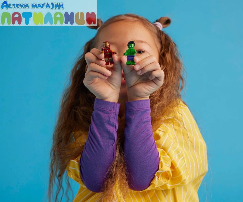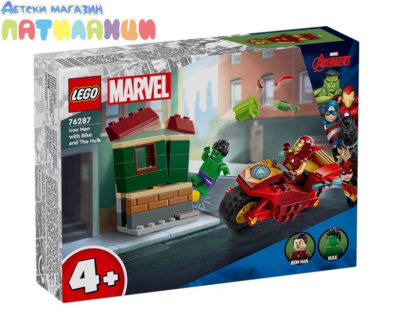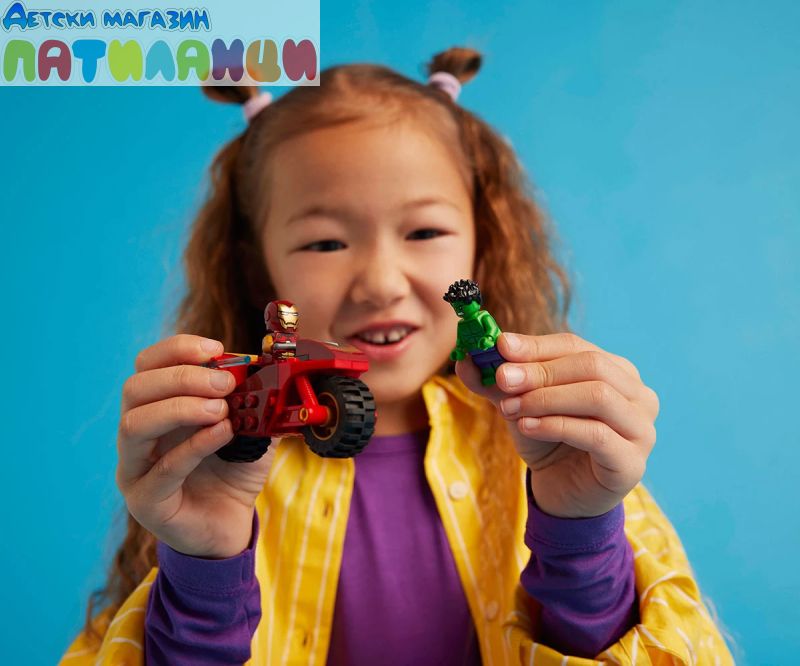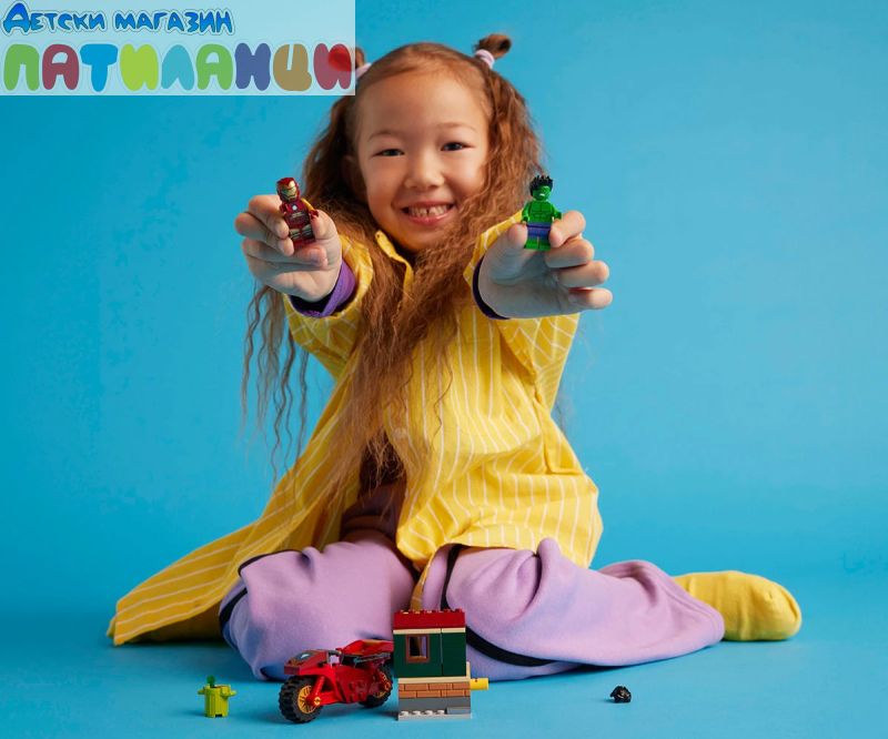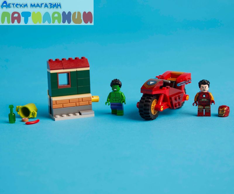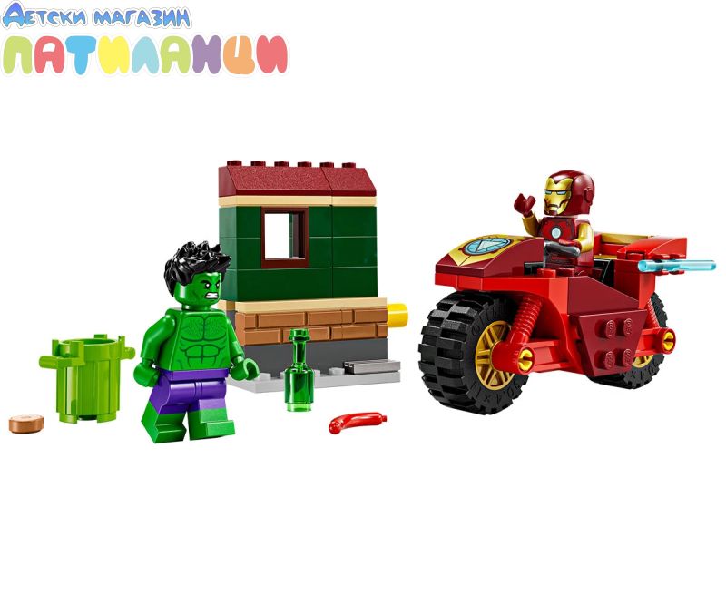 - Играчка за конструиране с Железния човек и Невероятния Хълк – комплектът за конструиране и игра LEGO® Marvel Железния човек с мотоциклет и Хълк е проектиран специално за момчета и момичета над 4 години;