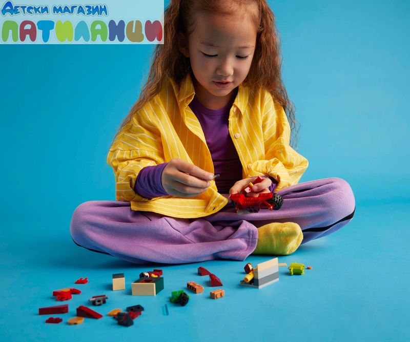- Предназначено за млади строители – с началната тухличка в рамка на превозно средство построяването започва бързо, така че има повече време за игра;