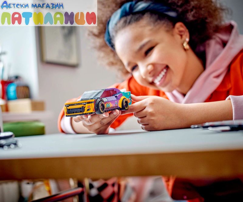 Комплектът включва и минифигура на пилот от NASCAR с каска, за да можете да организирате свой собствен вълнуващ състезателен екшън.