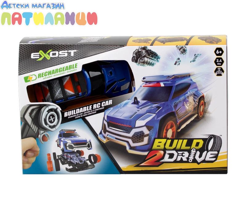 Пригответе се да разопаковате и сглобите своя собствена радиоуправляема състезателна кола. Открийте двигателите и колелата от серията BUILD 2 DRIVE с повече от 20 лесни за сглобяване части, които можете да монтирате без отвертка. 2,4 Ghz предаване предлага както 2-степенно управление на ускорението, така и прецизно дистанционно управление. Превозните средства имат акумулаторни батерии за бързо презареждане и много аксесоари за подобряване на изживяването в играта.