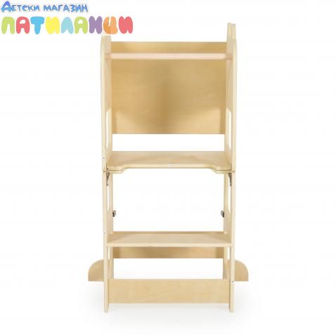 - Обикновено децата имат ограничен достъп до кухненски плот, мивка или маса. Обучителната кула позволява на децата да участват активно в дейности като готвене и миене на ръце. Това изгражда увереност и независимост в тяхното развитие.