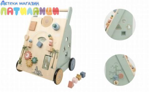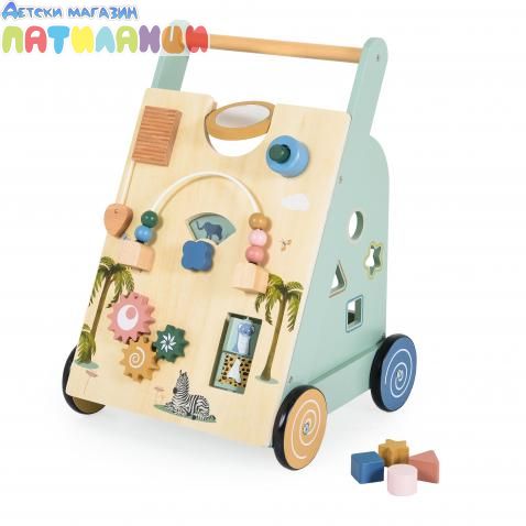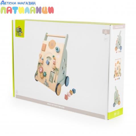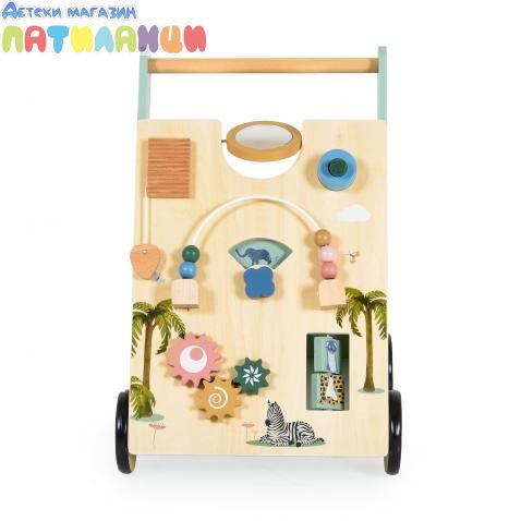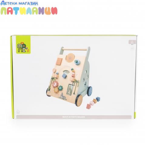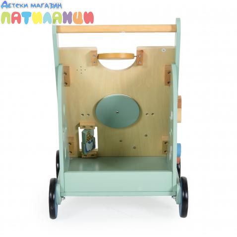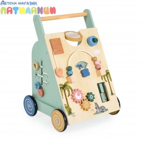 Дървена играчка за прохождане с 9 различни активности за игра.