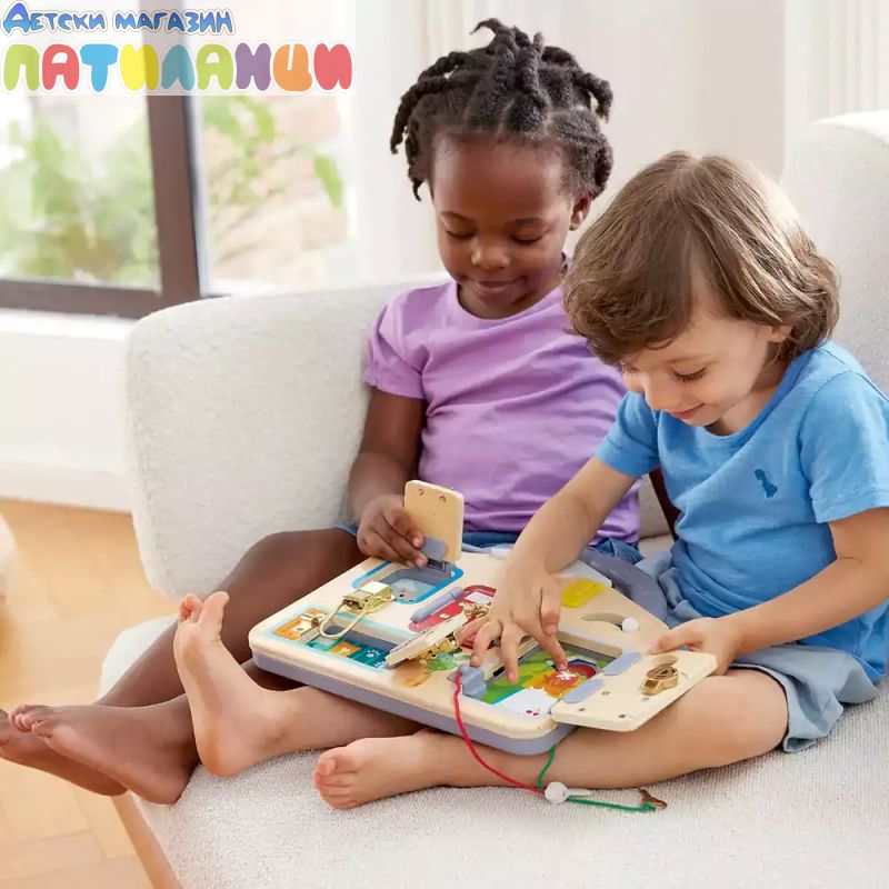 Дървената дъска с ключалки Hape съчетава забавление и обучение, като помага на децата да развият важни умения, докато откриват тайни и решават предизвикателства по увлекателен начин.