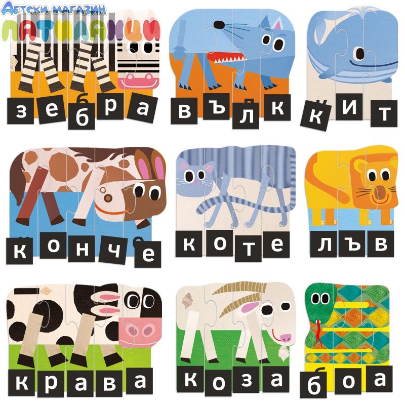 Научете се как да четете и пишете с тези забавани пъзели с животни.Сглобете прогресивните пъзели, съпоставете буквите и бъдете пръвият, който е съставил думите.