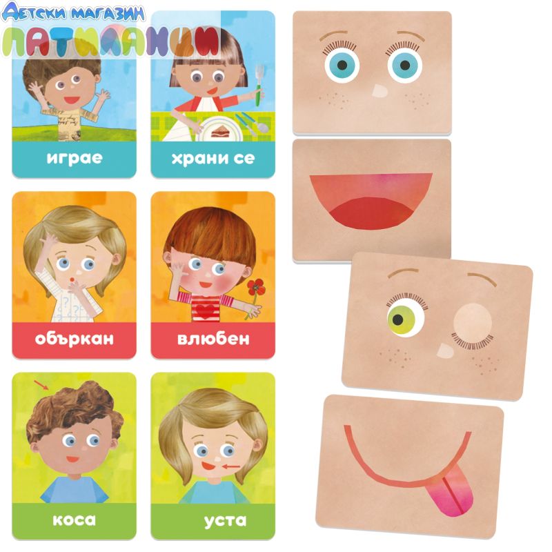 Може да се играе по няколко начина с картите - да разпознае емоцията, изражението на лицето, както и дейности от ежедневието.