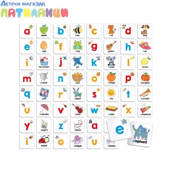 разпознаване на азбуката на английски език, обогатяване на речника, развитие на визуалната памет.