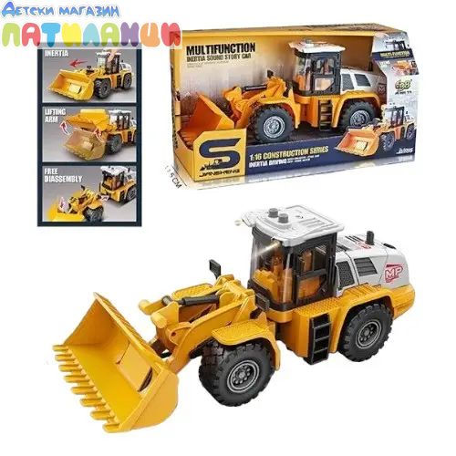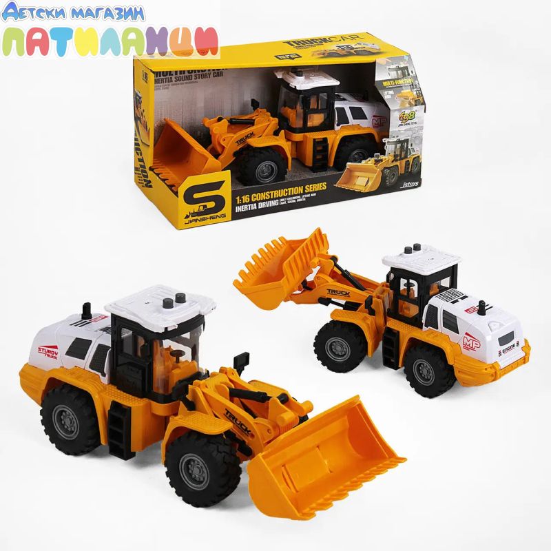 Тематичният свят на строителните превозни средства е изключително популярен, тъй като автомобилите играчки са красиво завършени и разполагат с цялостни функции. Новият челен товарач вече е добавен към този успешен сегмент. Това превозно средство с умен дизайн на убеждава със страхотни функции и лесно управление. Централната дръжка може да повдига и спуска цялото товарно рамо и да движи кофата. Благодарение на гумите с голям протектор и шарнирното кормилно управление, този нов колесен товарач също така изрязва страхотна форма във всеки пясъчник. Тази играчка е истински хит дори за по-малки деца, тъй като можем да я препоръчаме от 2-годишна възраст.