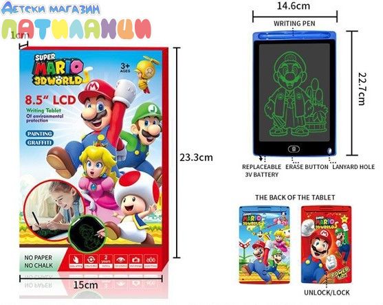 Детски LCD таблет за рисуване 8,5 инча Супер Марио