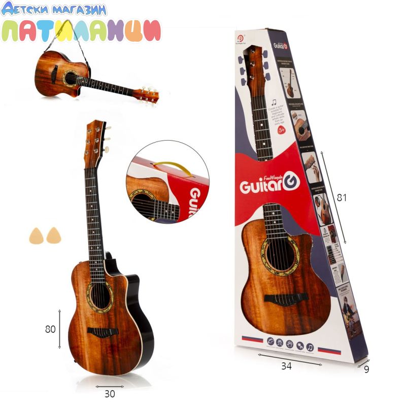 Детска китара за малки музиканти. Точно като истинска китара от дърво и метални струни, но в умален вариант - удобен за вашето дете.