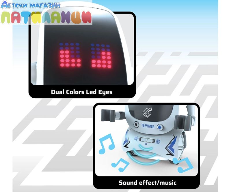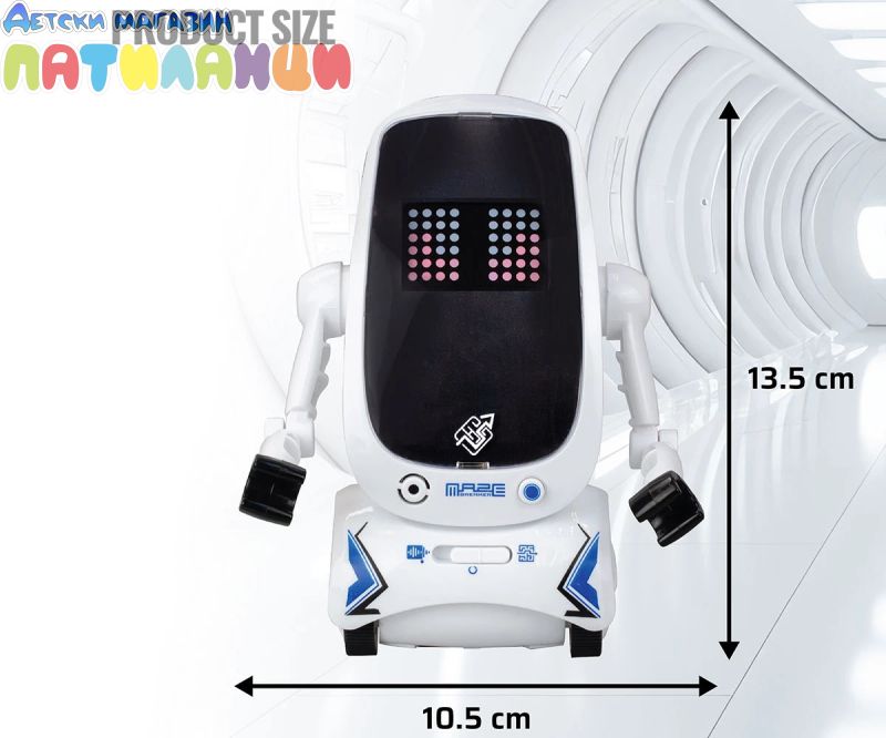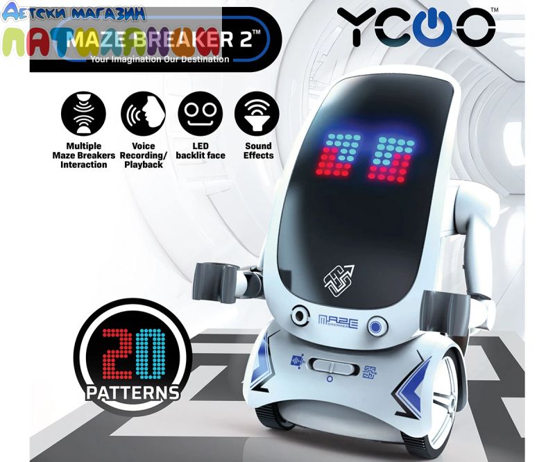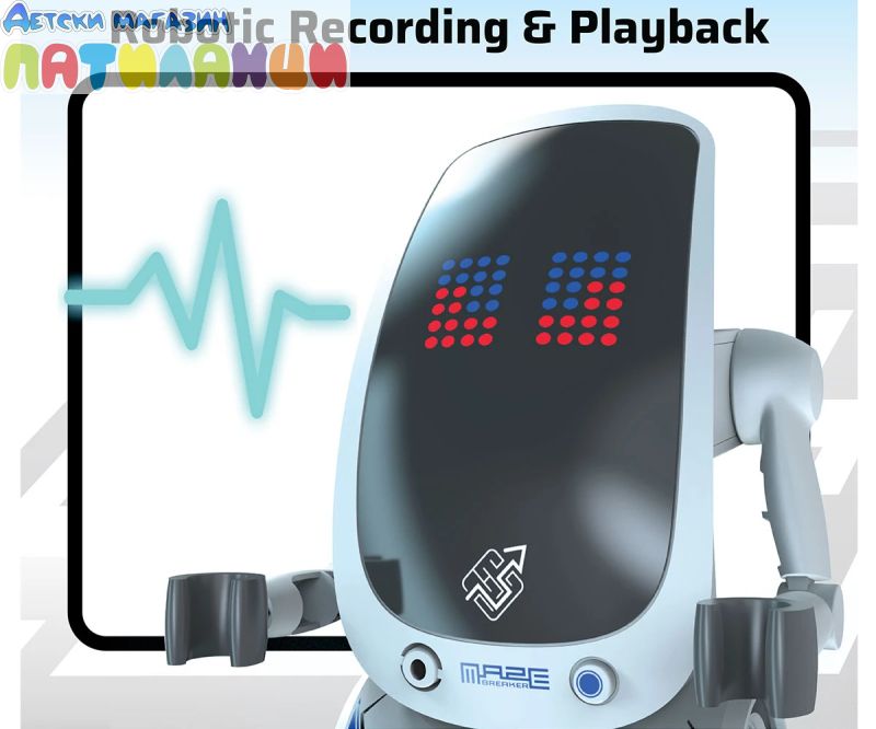 Изживейте новия Maze Breaker 2! Граждани на оригиналния Maze Breaker с нов облик и LED лице! Запазено за всички вдъхновяващи функции. Роботът за игра Silverlit MazeBreaker е интерактивен робот с над 8 различни функции. Litseto se sstoi ot LED екран и има големи светещи очи. Роботът може да се върти във в сички сокки и да танцува с вграден звук и ефект. Освен това можете да следвате две линии и да намерите изход от включването на лабиринта. Играйте и открийте забавни интерактивни функции на MazeBreaker. Можете да записвате и възпроизвеждате съобщение с помощта на функцията talkback.