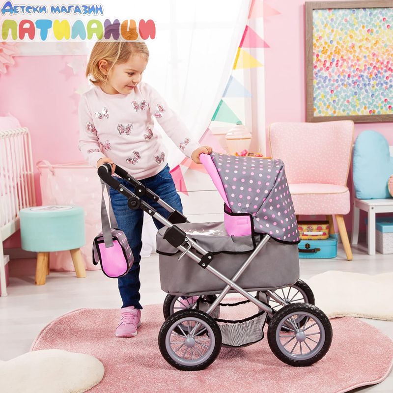 Детска количка за кукли с чанта
