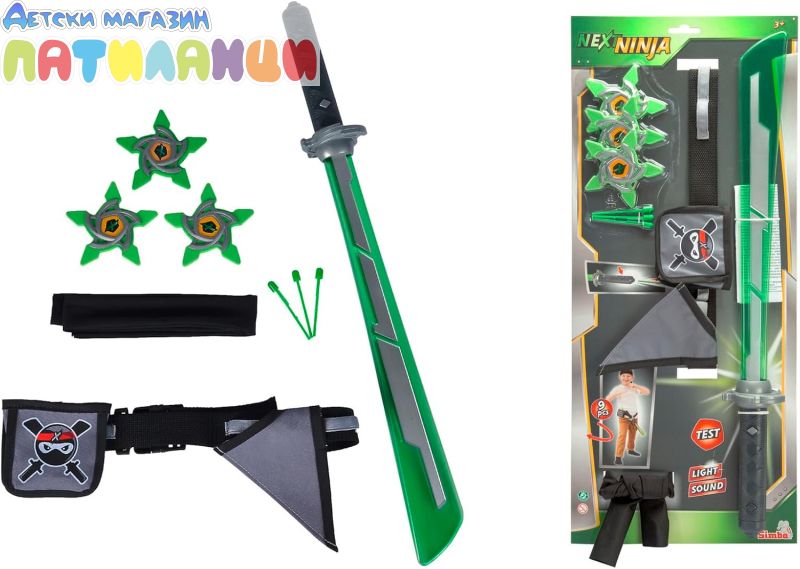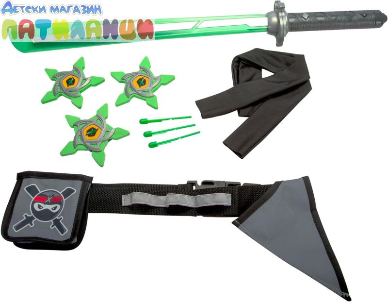 Next Ninja Mega Set, 9 части, колан, регулируем до 80 см, меч със светлина и звук, функция за стрелба, три стрели и звезди, лента за глава, от 3 години