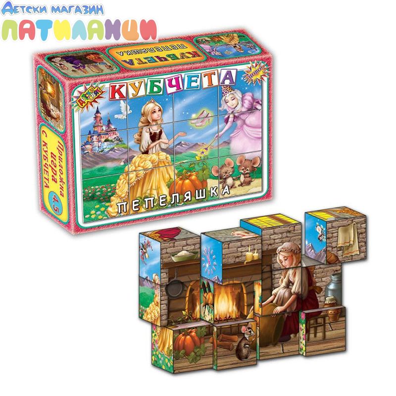 - Комплектът кубчета "Пепеляшка" съдържа 12 броя кубчета с размери 4 x 4 cm.