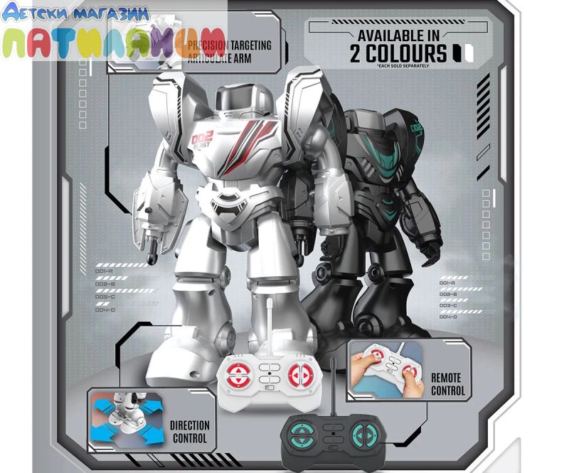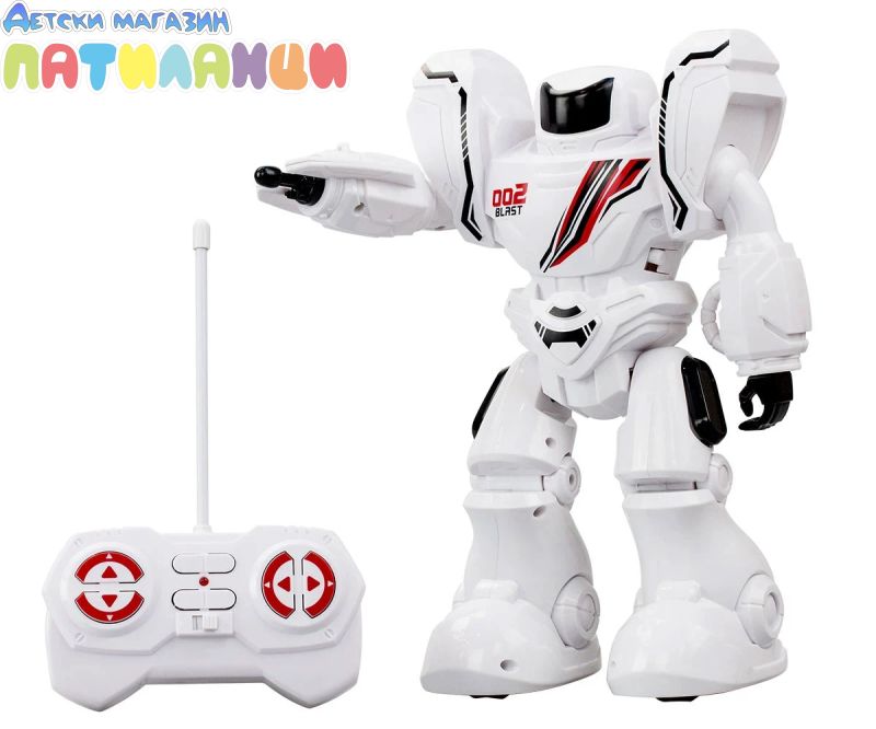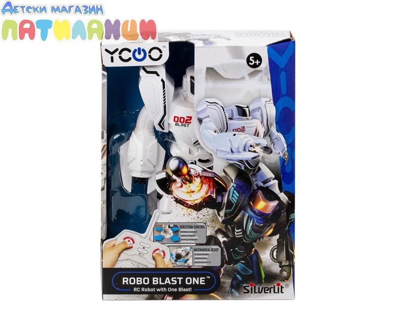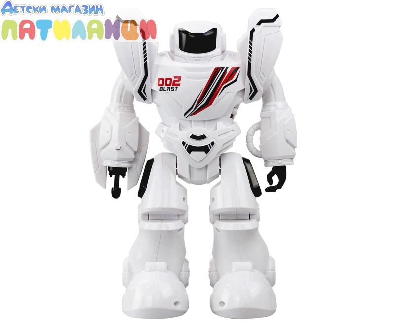 Представяме ви ROBO BLAST ONE: робот с дистанционно управление с ONE BLAST! Само с натискане на бутон на дясната си ръка, той изстрелва стреличка от юмрука си!