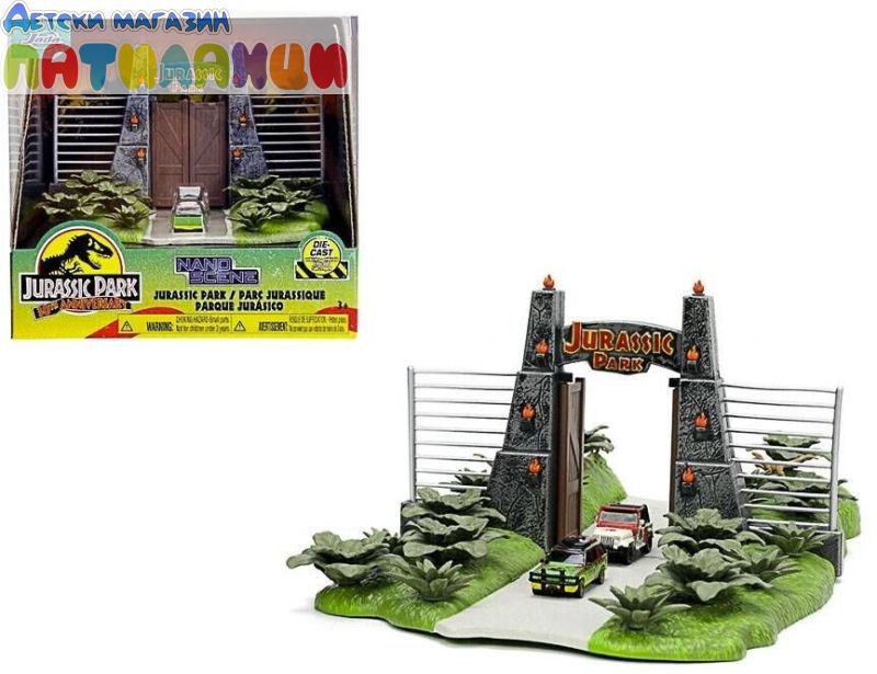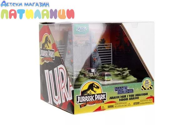 на Джурасик парк. Сглобете динозаврите и растенията около вратата, за да пресъздадете типичния момент от филма или да направите свои собствени праисторически приключения. Hollywood Rides Nano Scene е задължителна част от всяка колекция.