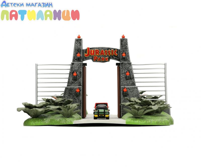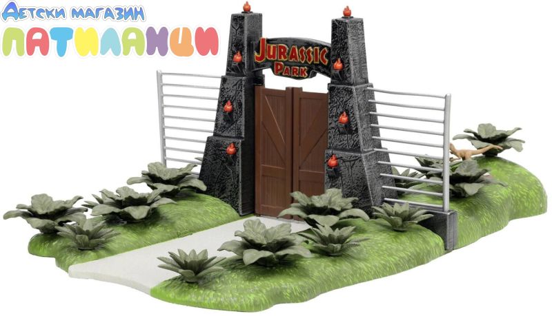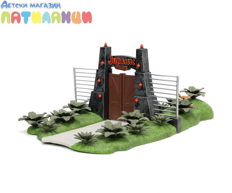 Тази диорама е изработена с невероятно внимание към детайла и улавя емблематичната сцена при портата на Jurassic Park. Подредете динозаврите и растенията около портата, за да пресъздадете култови моменти от филма или създайте ваше собствено приключение.