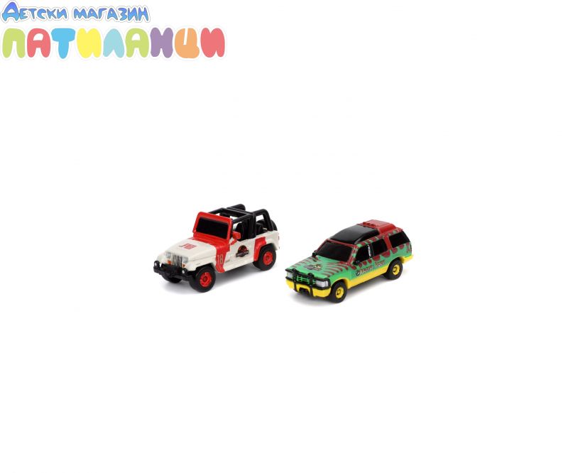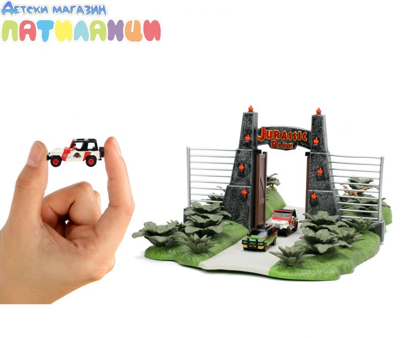 • ГОТОВ ЗА ИГРА: Включва автомобили Jeep Wrangler и Ford Explorer Nano, три динозавъра и растения. Изисква се известно сглобяване.