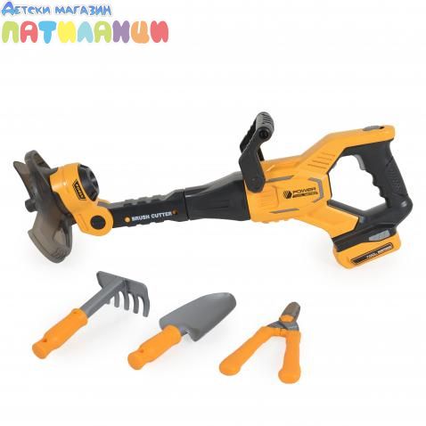 Този реалистичен градински комплект със светлинни и звукови ефекти ще зарадва всяко дете, което обича да играе на открито! Комплектът включва тример, градински ножици, лопатка и други инструменти, които позволяват на малките градинари да се почувстват като истински професионалисти. Всяко дете може да участва в ролеви игри, имитирайки работата на възрастните в градината.