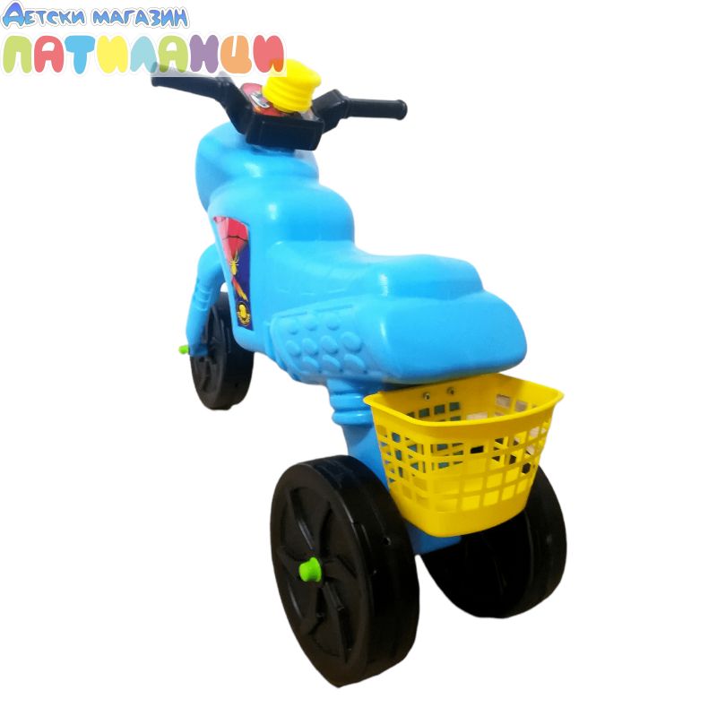 Пластмасов кракомобил мотор с клаксон и кош за багаж. Размери-64*30*45 см. Разстояние от пода до седалката-30см. За деца с тегло до 20 кг.