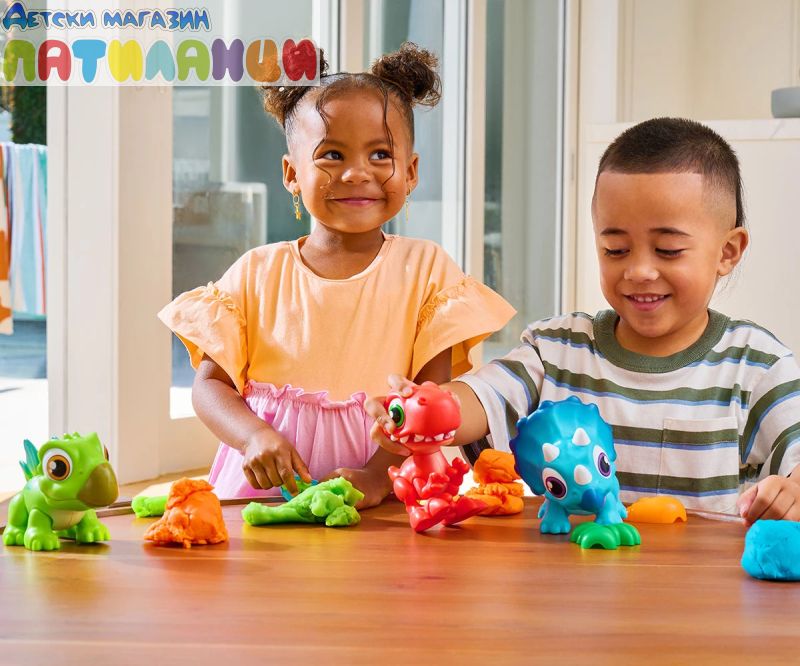 Мачкането и формирането на включения Dino plastilin е невероятно за развиване на крайните двигателни умения на децата и за изграждане на вашата креативност;