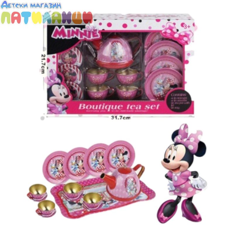 Детският сервиз за чай е чудесен подарък за всяка малка домакиня. С него тя ще може да организира чаено парти за своите приятелки. Сервизът е цяло произведение на изкуството! Чайникът, четирите чашки с чинийки, четирите чинийки за закуска и подносът са с красива декорация, която носи пролетно настроение. Тези малки красоти, освен че впечатляват с дизайн, са направени по подобие на истинските чаени сервизи с тази съществена разлика, че са много по-здрави и нечупливи. Изработени са от метал и са подходящи за игра дори от най-мъничките деца.