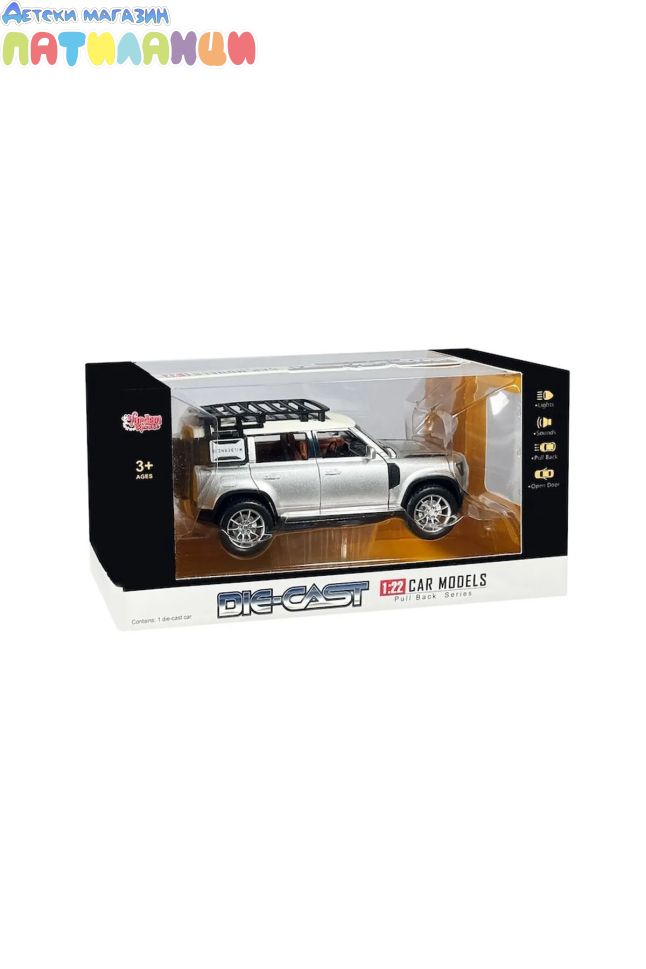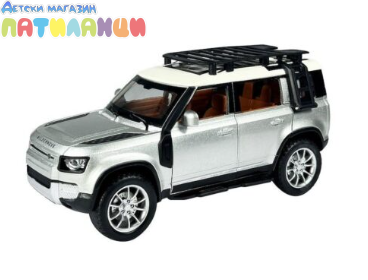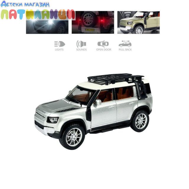 Метален джип Land Rover Defender със звук и светлини 1/22 сребрист