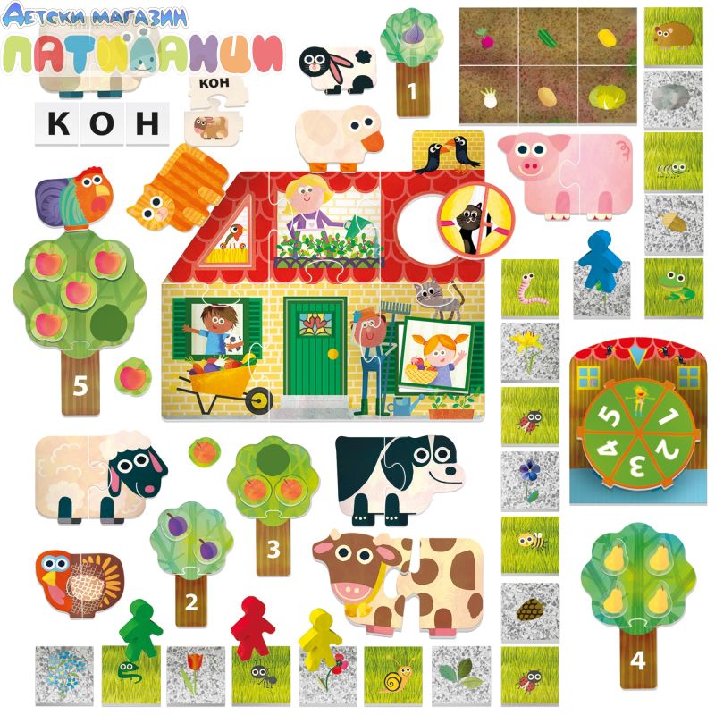 Детето ще научи формите, докато "строи" къщата. Имената на някой от животните. Ще се научи да брои до 5 и ще се запознае с азбуката.