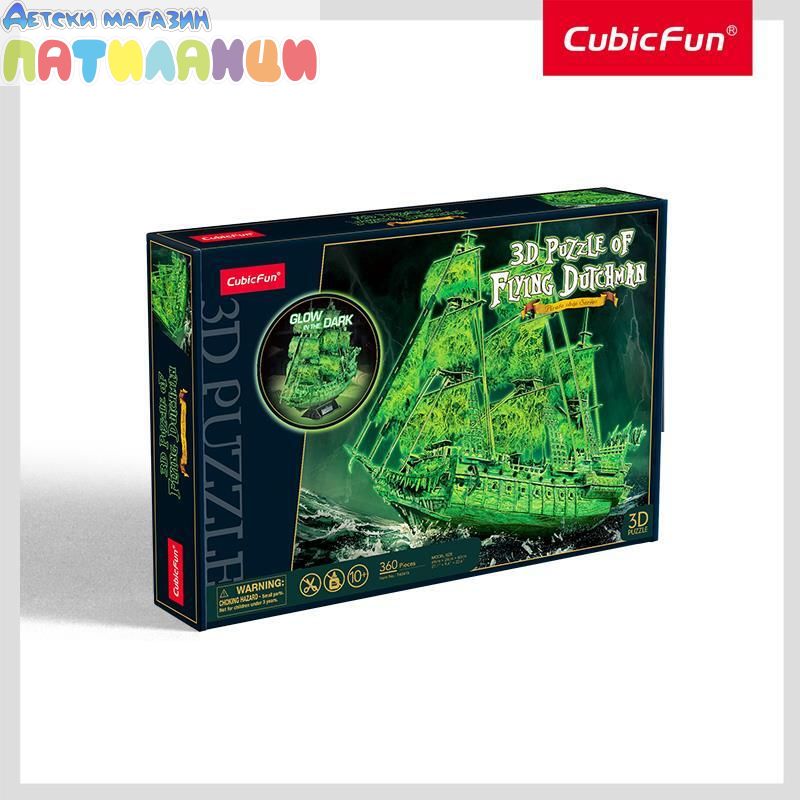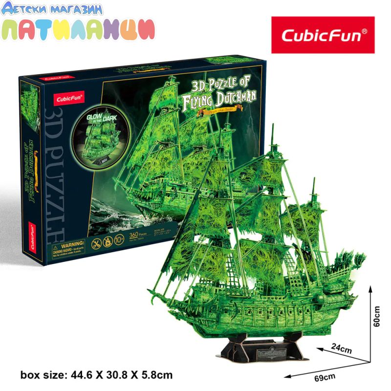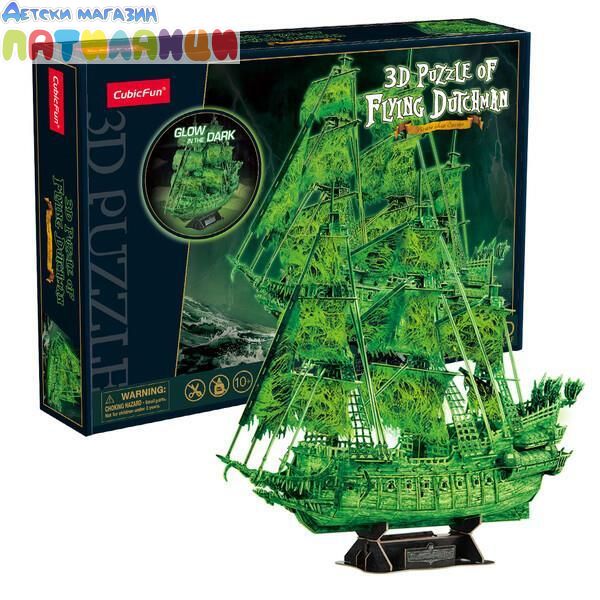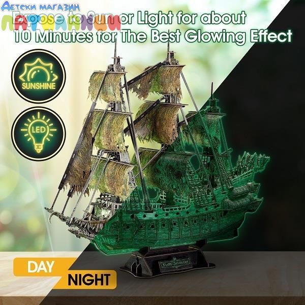 Пъзел 3D Пиратски кораб Летящ холандец Светещ в тъмното CubicFun T4041h