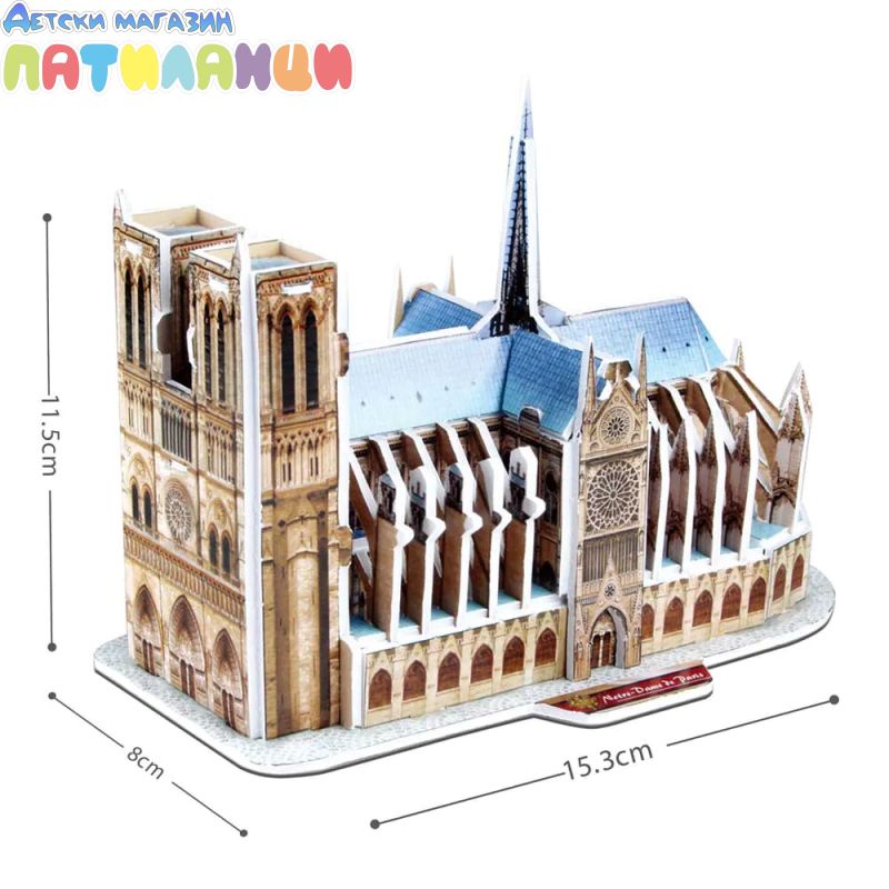 Построй невероятния Нотр Дам в реалистичен мини 3D модел. 3D пъзелът развива не само логическото мислене, фината моторика, постоянството и точността, но и учи на много интересни неща за света, докато се забавляваш. А накрая ще притежаваш умален модел на една от най-емблематичните забележителности, която да използваш за декорация или за игра.