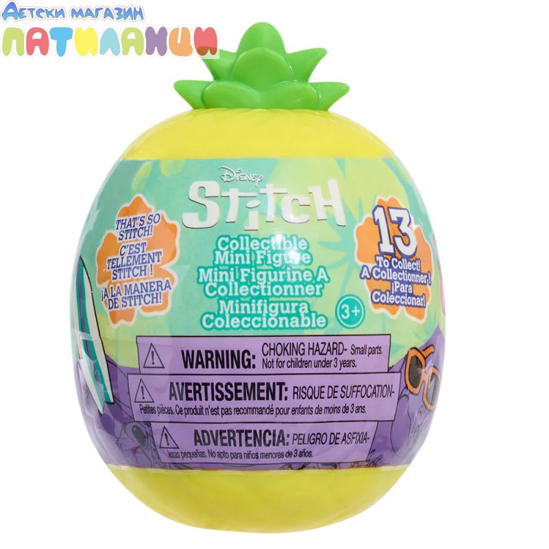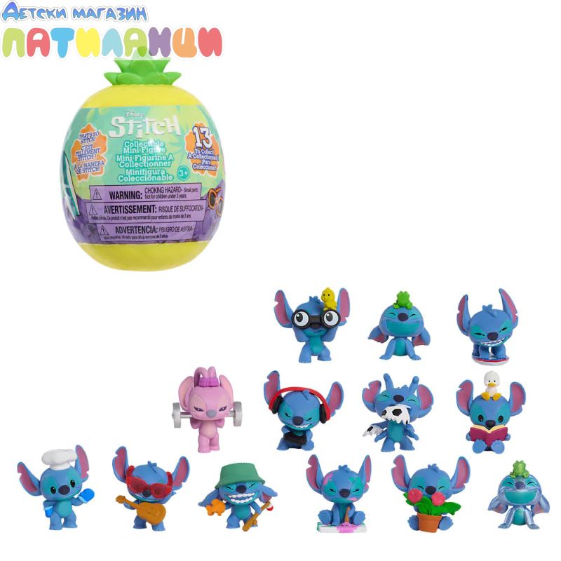 Присъедини се към Disney Stitch във вълнуващи приключения с колекционерските фигурки на Disney Stitch. Тези очарователни фигурки позволяват на въображението да се развихри, докато изследваш любимите хобита на Стич. Скрити в цветни капсули с форма на ананас, всяка изненадваща 5-сантиметрова фигурка показва Стич или Ейнджъл в 1 от 13 забавни позиции, от весели игри до футбол, четене, сърфиране, йога и др. Тези фигурки-играчки Disney Stitch са идеални за въображаема игра или колекциониране и се превръщат във възхитителни парти сувенири.