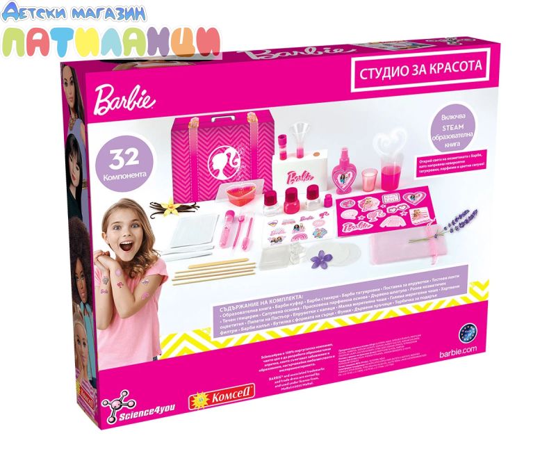 Открий света на козметиката с Барби, като направиш невероятни татуировки, парфюми и цветни сапуни! Барби Студио за красота е уникална и завладяваща игра, която съчетава световете на красотата и науката за момичета. Този комплект позволява на децата да изследват и експериментират с различни козметични формули, цветове и дизайни, докато учат важни научни концепции. Комплектът включва широка гама от козметични продукти, всички специално проектирани за употреба от деца. Вместо козметичните продукти, комплектът съдържа пълен наръчник с лесни за следващи инструкции и обяснения на науката зад всеки експеримент. С комплекта Barbie Studio за красота момичетата могат да открият принципите на смесване на цветовете, да научат за химикалите и техните реакции и да развият творчеството си по безопасен и образователен начин. Тази игра не само включва децата в забавна и въобразява игра, докато превърне себе си и приятелите си в начинаещи гримьори, но и включва вашата любов. Чрез изследването на научните концепции и принципи, свързани с козметичните продукти, децата могат да получат по-задълбочено разбиране на света около тях и ролята, която науката играе в ежедневието ни в живота.
