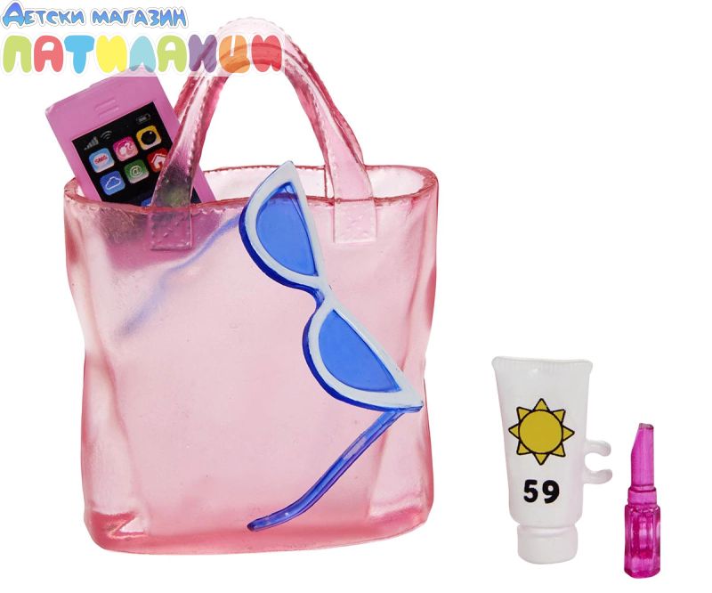Нейната розова чанта е идеална за съхранение на нейния слънцезащитен лосион, червило и смартфон, фунийката от ментов сладолед се иска за ръката и за повече реалистичност!