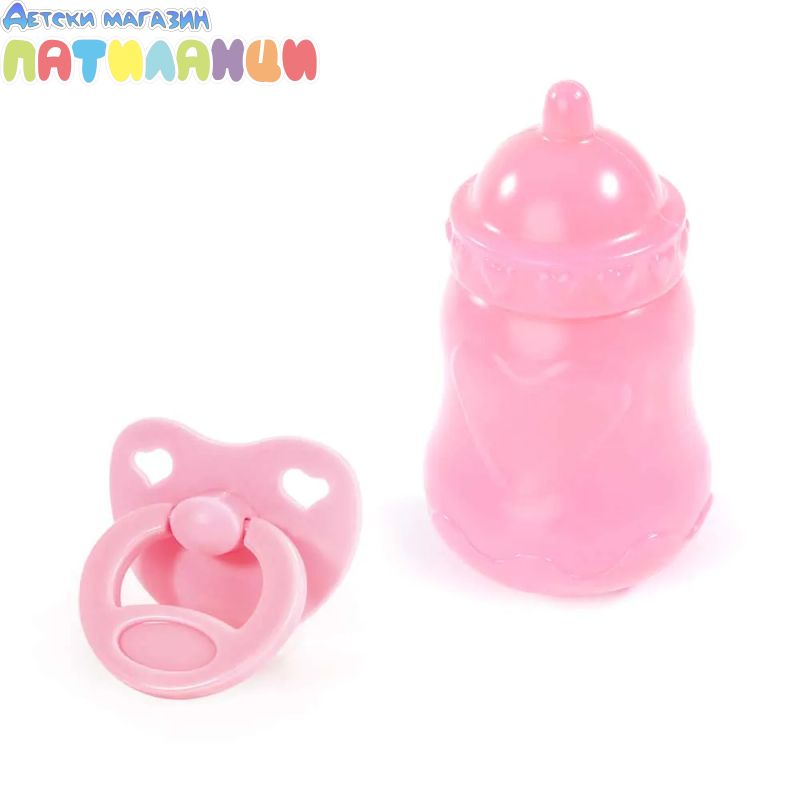 Мече, биберон и шише за игра, хранене и утеха на куклата.