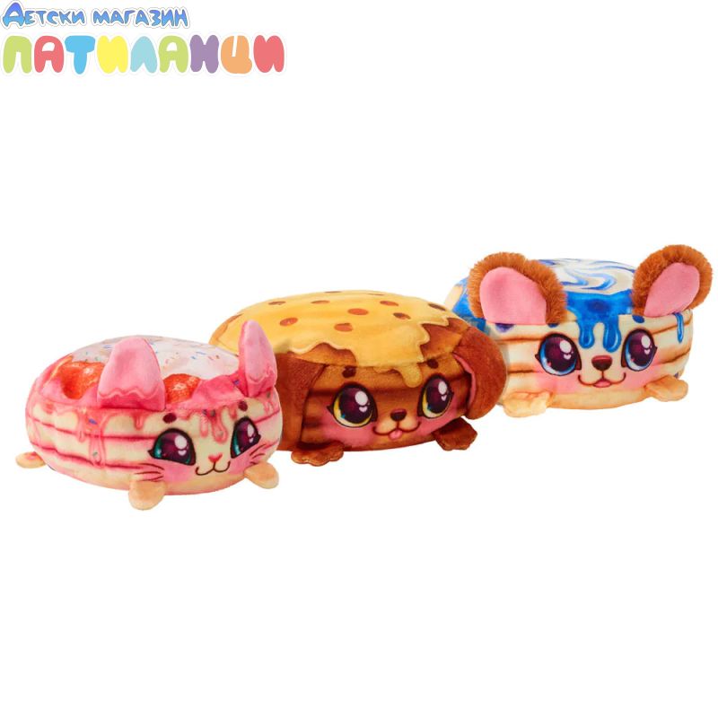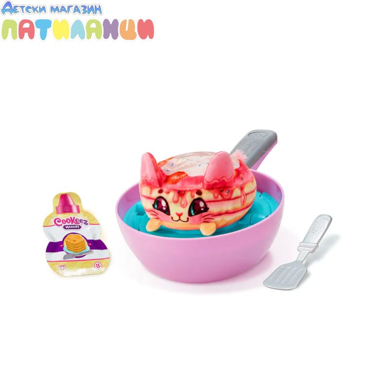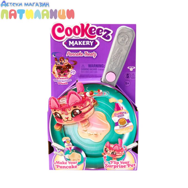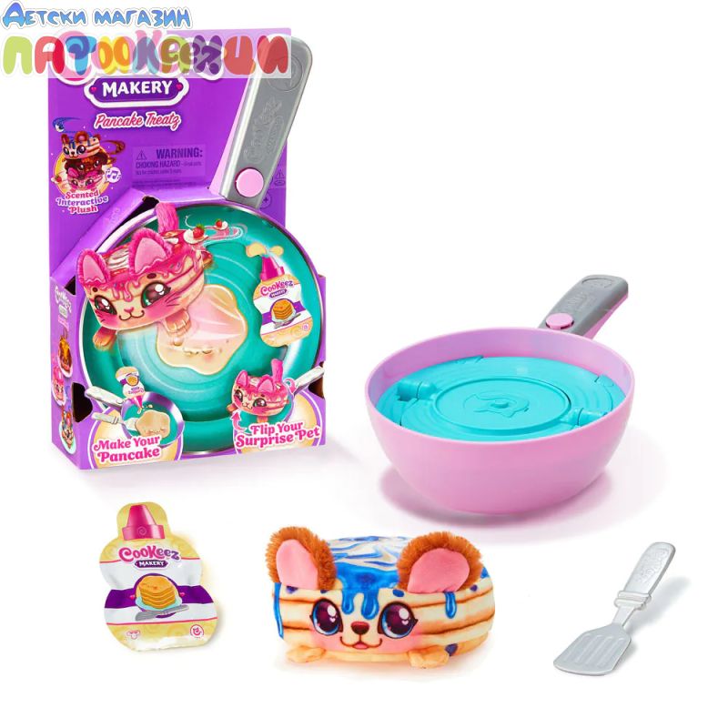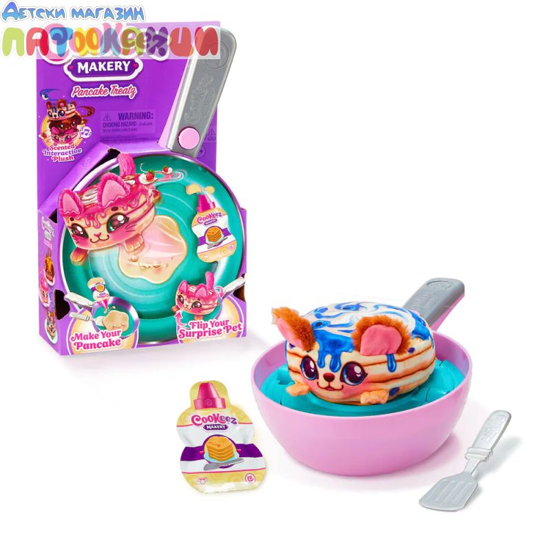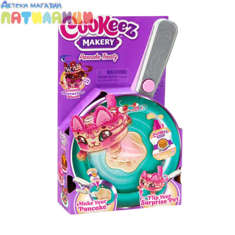 Cookeez Makery Pancake Treatz има вълнуващо разкритие. Когато обърнеш тестото за палачинки в тигана, не само ще видиш очарователен плюш, но и ще чуеш сладки звуци, докато държиш домашния си любимец и ще усетиш вкусния му аромат на палачинки.