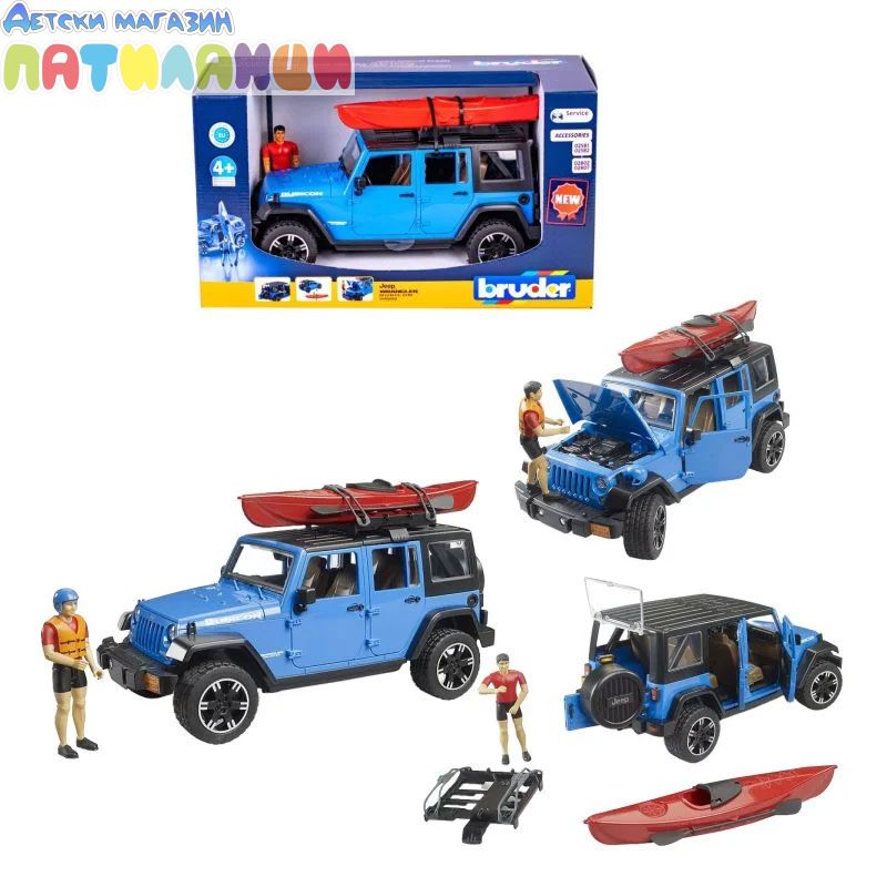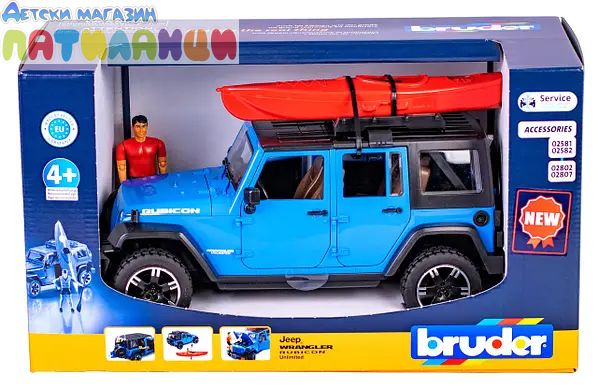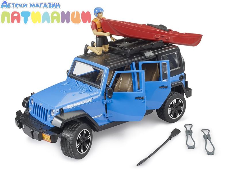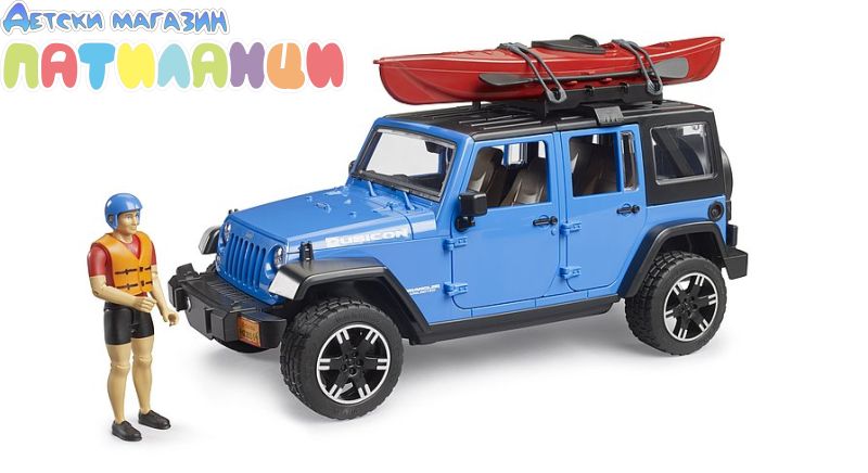 Играчка за офроуд Bruder Jeep Wrangler Unlimited Rubicon с каяк и фигурка (02529)