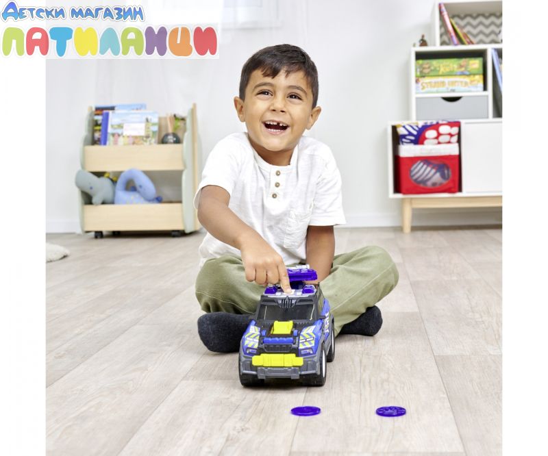 • Готина полицейска кола - Никой мошеник не е застрахован от тази кола играчка: със своите интерактивни функции и изненадващи екстри, дългата 30 см полицейска кола ще свали всеки престъпник.