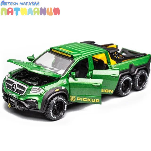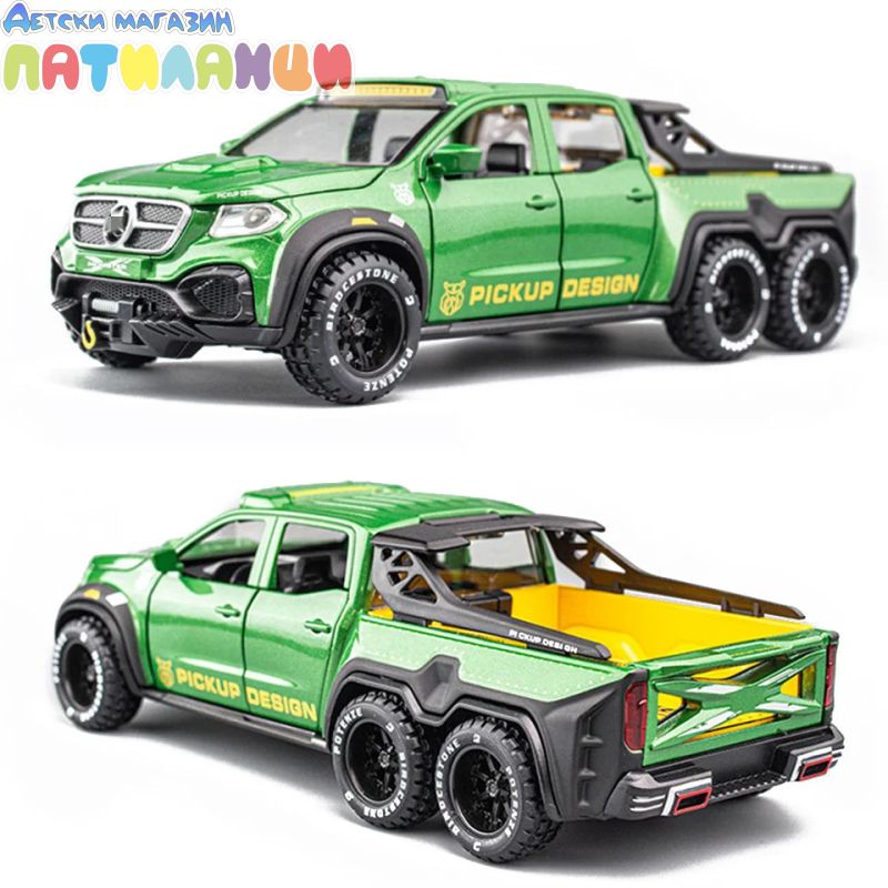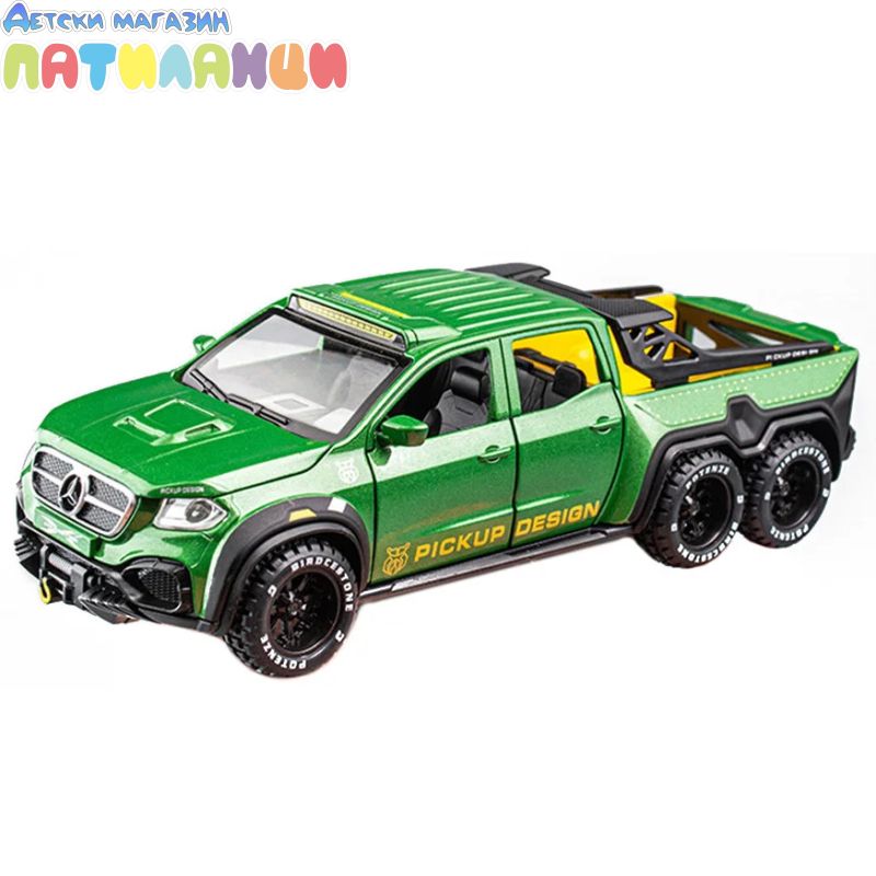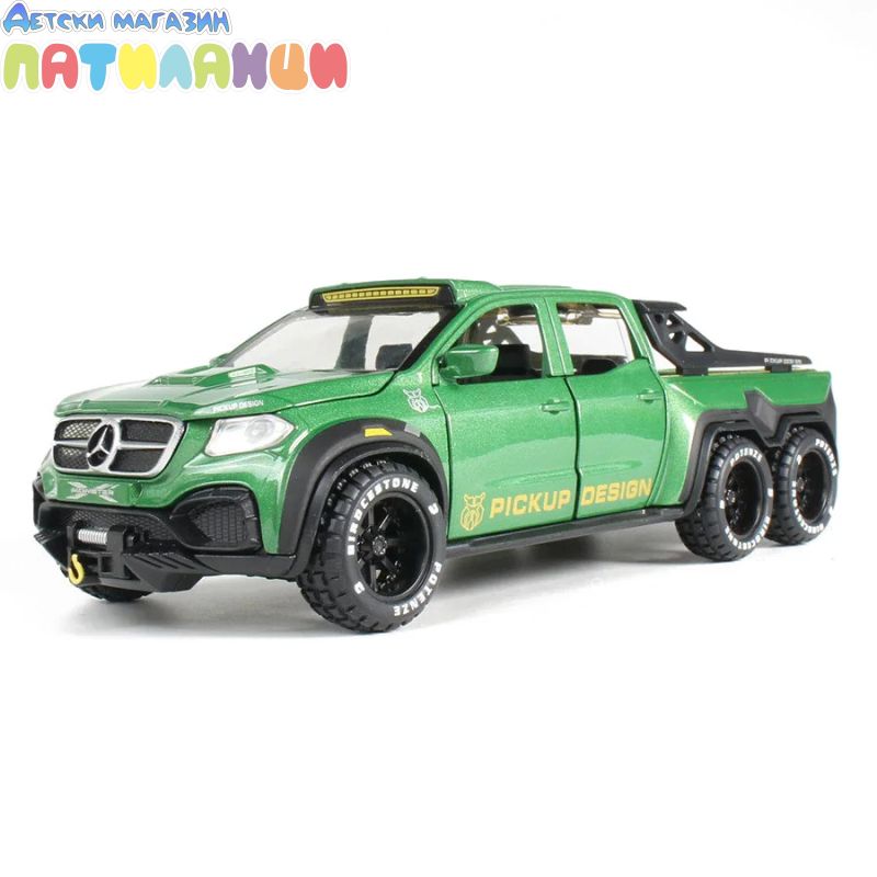 Метален автомобил Mercedes пикап със звук и светлини 1/24 зелен