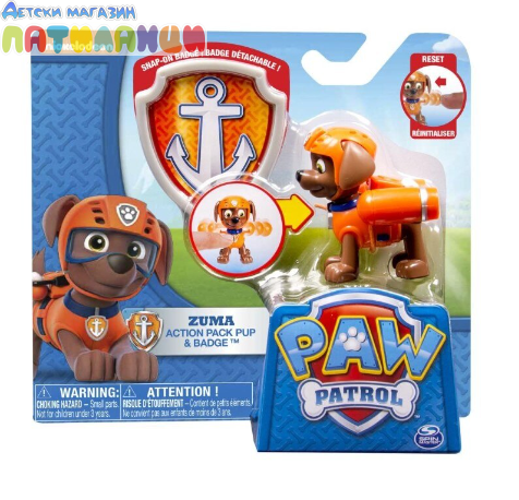 Paw Patrol Фигура със значка Zuma