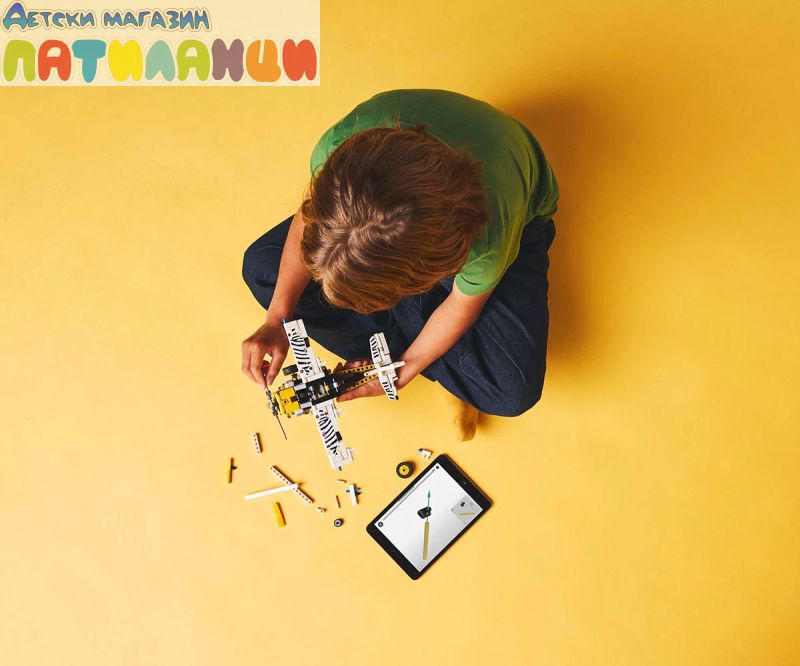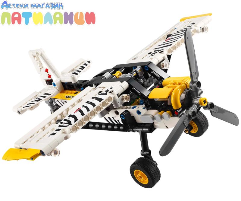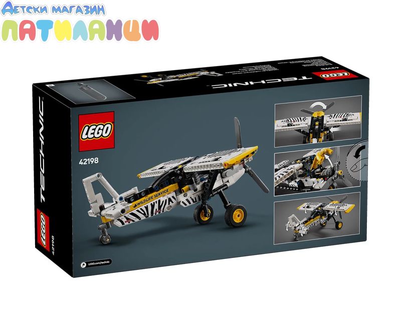 Нека въображението да полети с този забавен самолет за деца на възраст над 8 години. Момчетата и момичетата могат да се насладят на построяването на LEGO® Technic Самолет с витло (42198), преди да изпробват вълнуващите му функции. Натиснете лоста, за да активирате въртящото се витло. Регулирайте елероните на страничните и задните крила. След това отворите капака на двигателя, за да разгледате 4-цилиндровия бутален двигател. Този детски самолет се отличава със забавен дизайн със зеброви шарки, което символизира ролята на този вид самолети за опазването на дивата природа. Комплектите с превозни средства LEGO Technic се отличават с реалистично движение, за да включват малките строители с LEGO във вселената на техниката. Този комплект е чудесен подарък или изненадващо за деца, които обичат самолети и превозни средства LEGO. Вижте как децата развиват своите строителни умения, докато играят със своя самолет с витло. Някак децата откриват лесно и интуитивно строително приключение с приложението LEGO Builder, където можете да направите грешка и да завъртите 3D моделите, да запазите комплекти и да проследите напредъка си.
