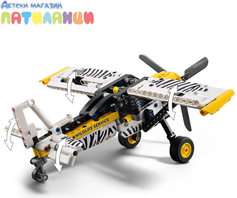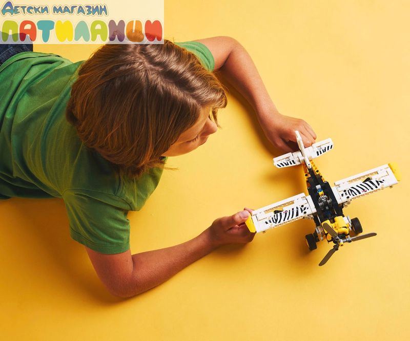 Дизайн със зеброви шарки – самолетът LEGO® се предлага със страхотен дизайн със зеброви шарки, който символизира ролята на този вид самолети за опазването на дивата природа;